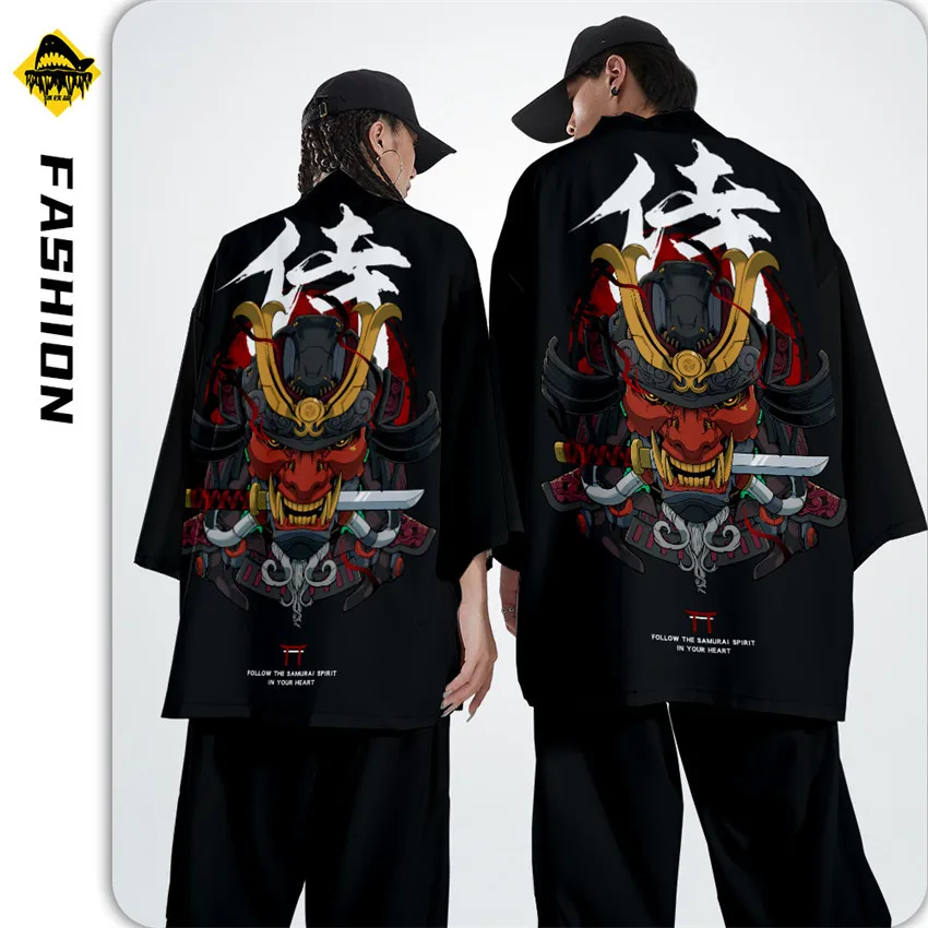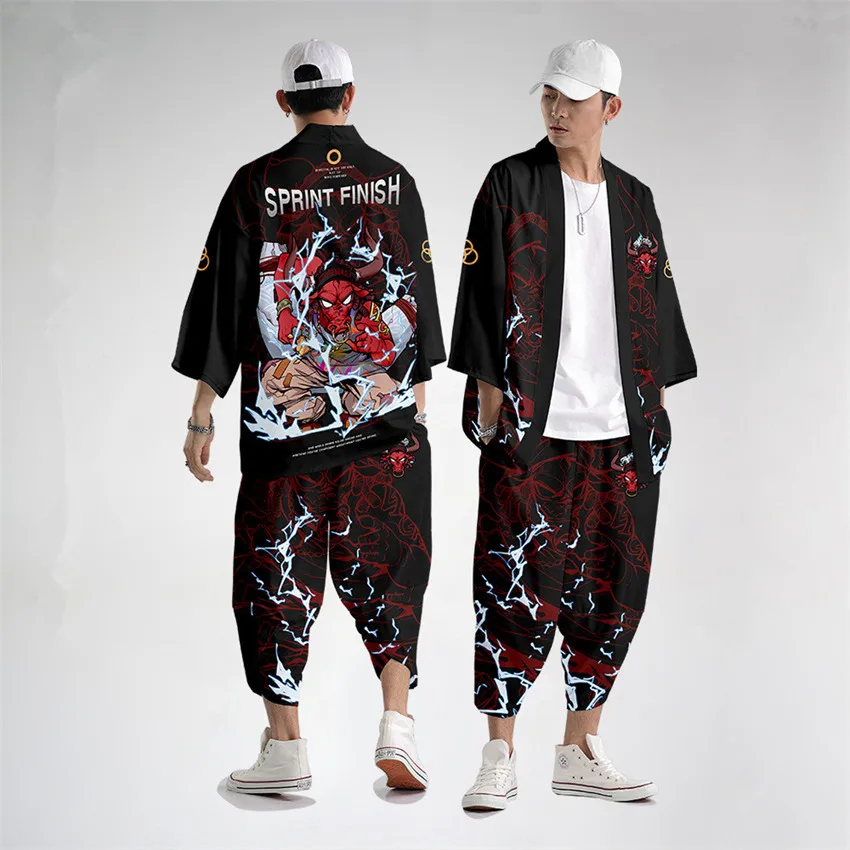 Two-piece Suit Plus Size S-6XL Loose Japanese Cardigan Women Men Cosplay Yukata Clothing Harajuku Samurai Kimono + Pants Sets