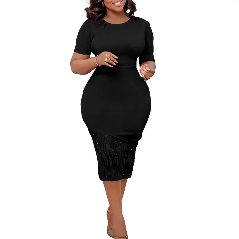African Dresses For Women Dashiki Summer O Neck Sexy Lace Short Sleeve Vestidos Fashion Casual Female Midi Pencil Dress 2023