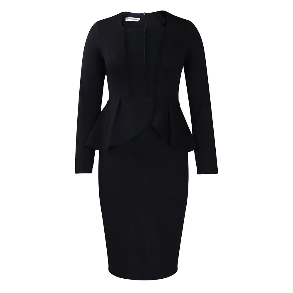 Elegant African Dresses for Women Autumn Fashion Long Sleeve High Waist Polyester Bodycon Dress Work Business Midi Dress S-3XL