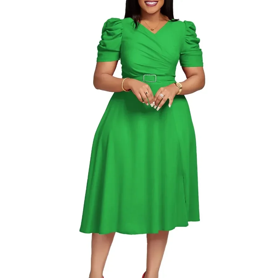 Name | Elegant African Dresses for Women Summer 2024 Fashion African Short Sleeve Polyester Red Blue Black Green Pleat Dresses Outfits |