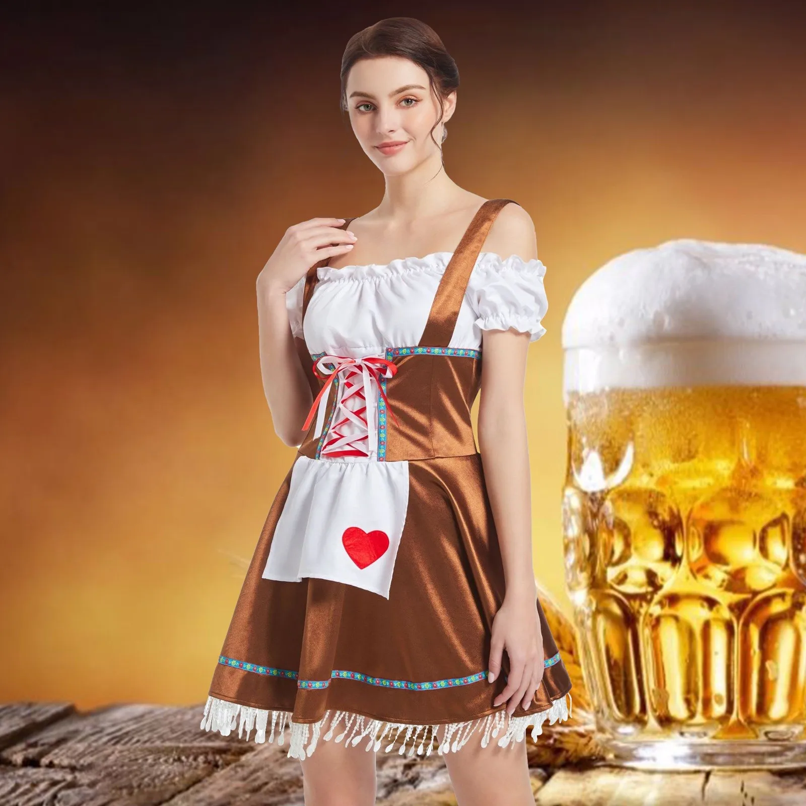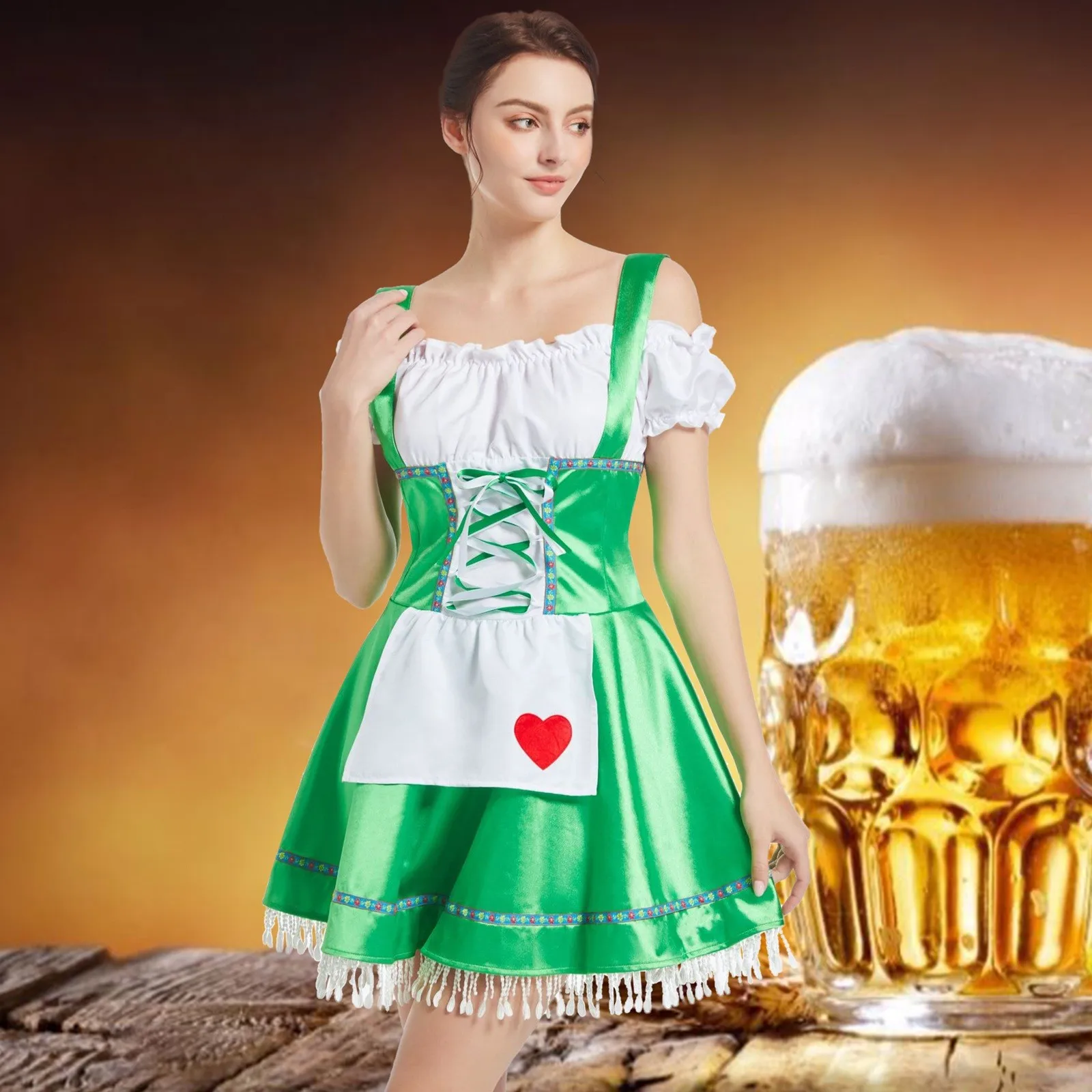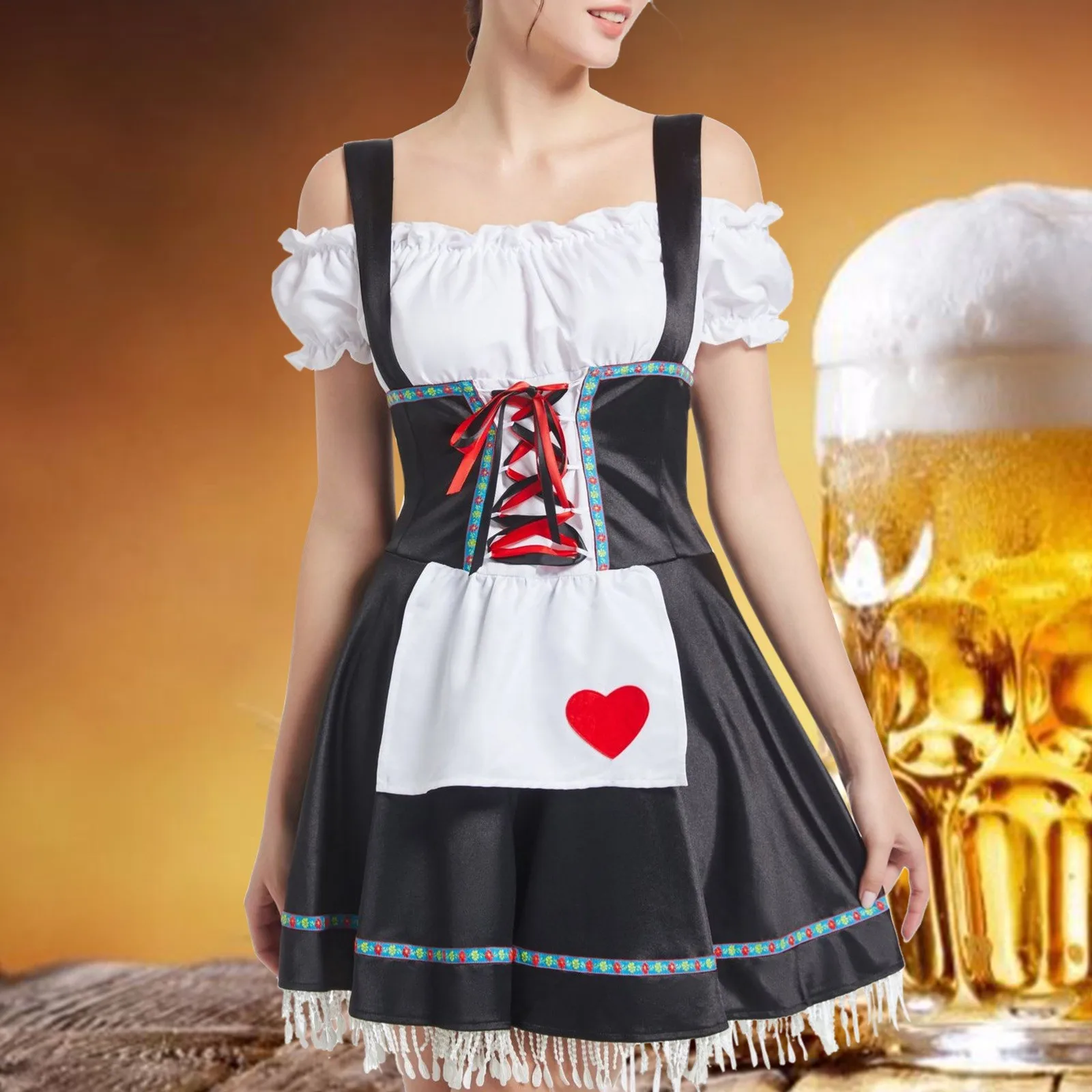 Name | Women's German 2024 Oktoberfest Bavarian Maid Dresses Short Sleeve Apron Dirndl Dress Women Vintage Fancy Party Dresses New |