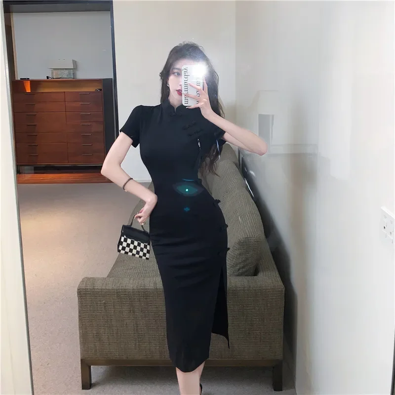 Elegant Sexy Chinese Dress Black Qipao Traditional Modern Cheongsam Harajuku Mini Dress Bodycon Carnival Dresses Up Outfit Party