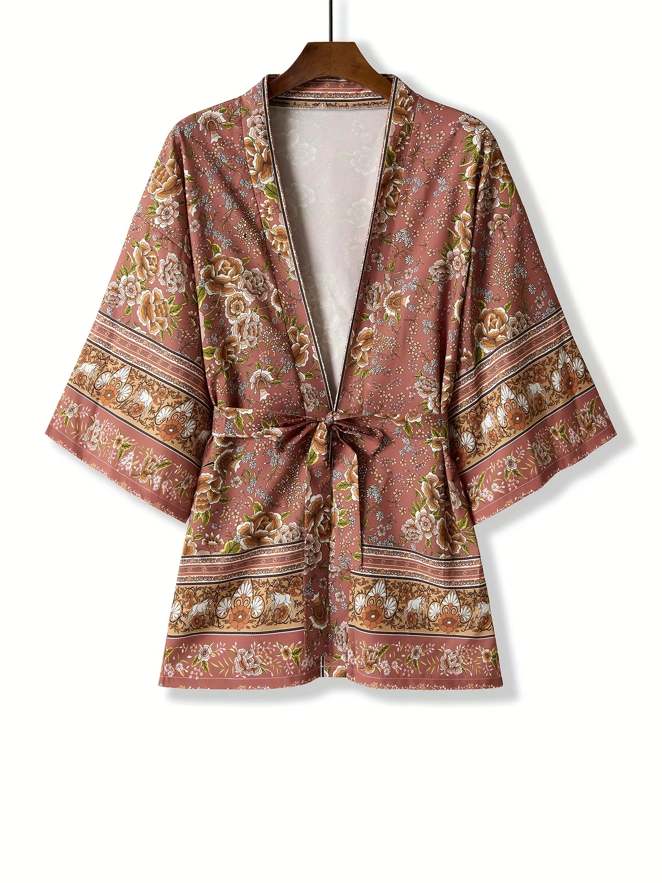European and American national wind retro wind floral print Sun protection spring and autumn seven-point sleeve kimono cardigan