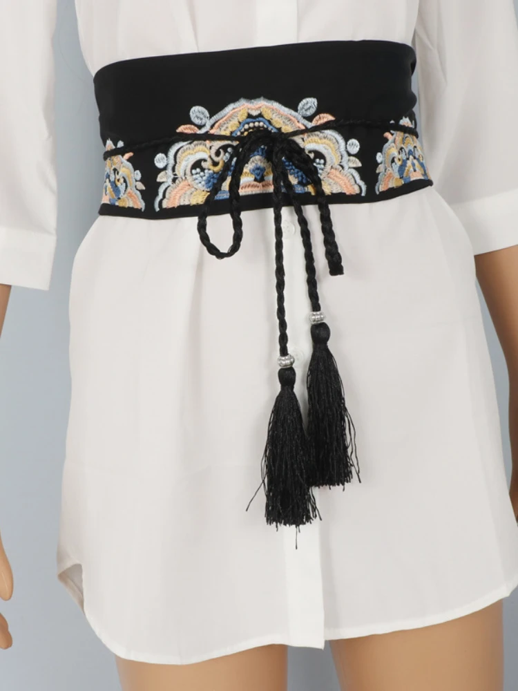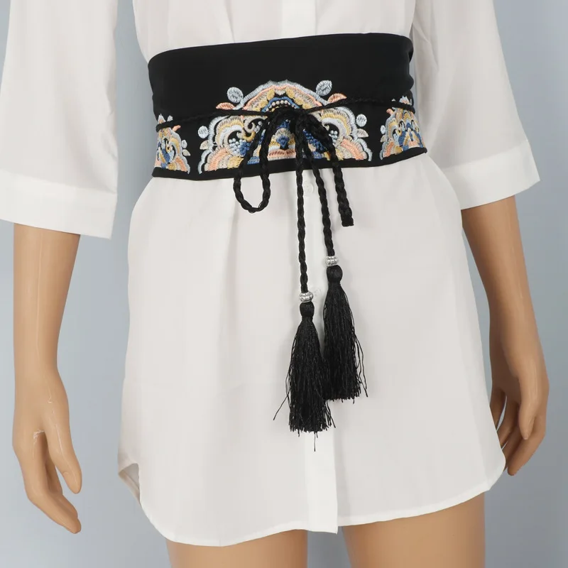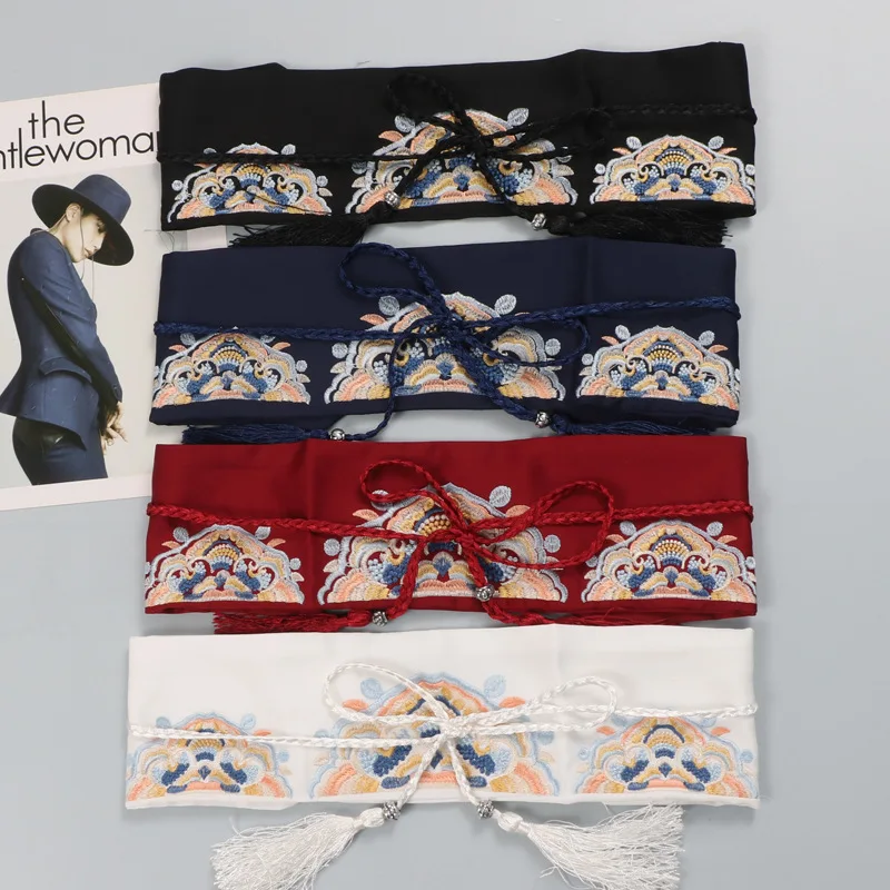 Chinese Style Embroidered Hanfu Wide Waist Kimono Belt Women Wide Corset Cummerbunds Fashion Yukata Belt Harajuku Streetwear
