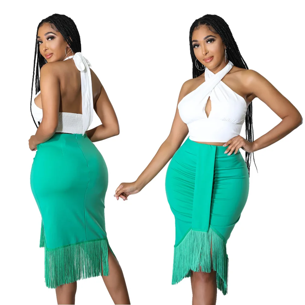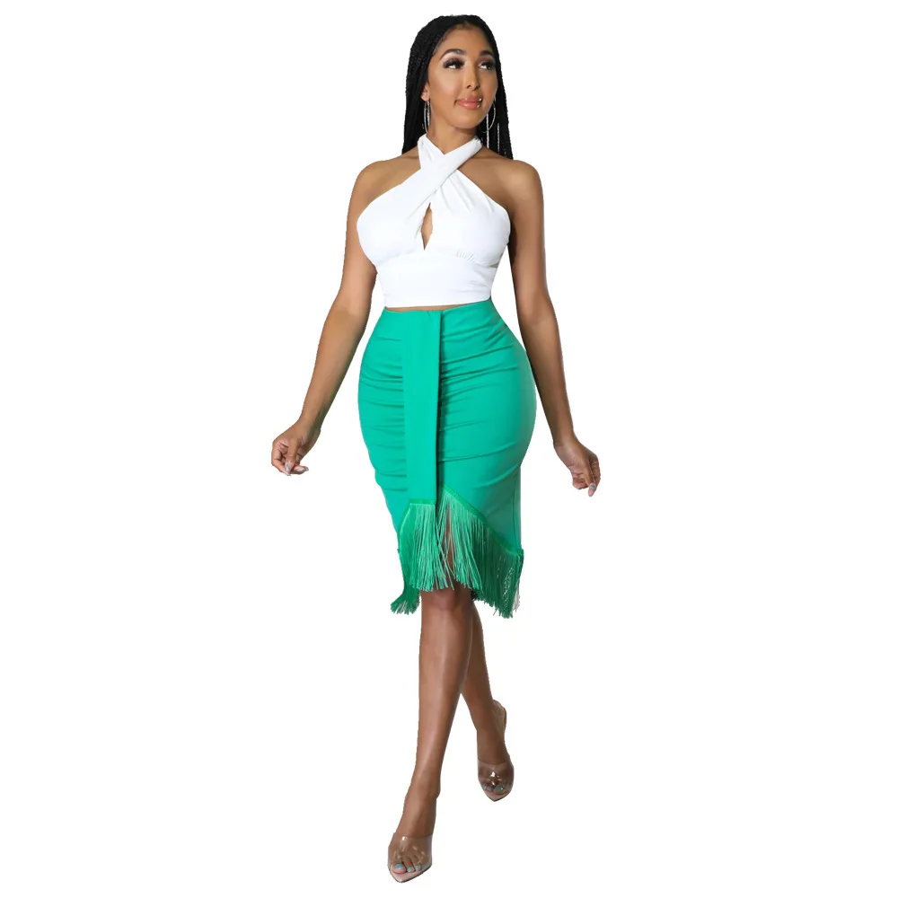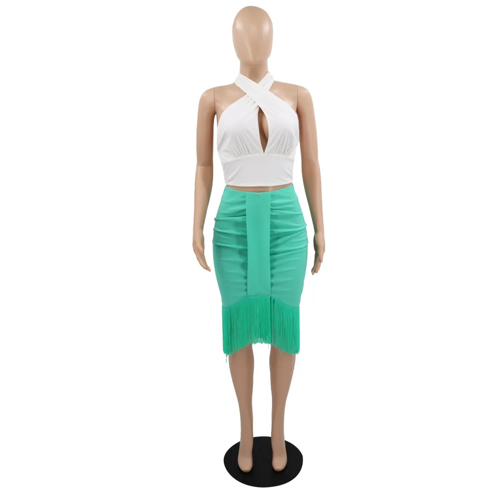 Name | 2023 Summer Sexy African Sleeveless Polyester 2 Pieces Top Skirt Matching Sets African Clothes for Women African Clothing |