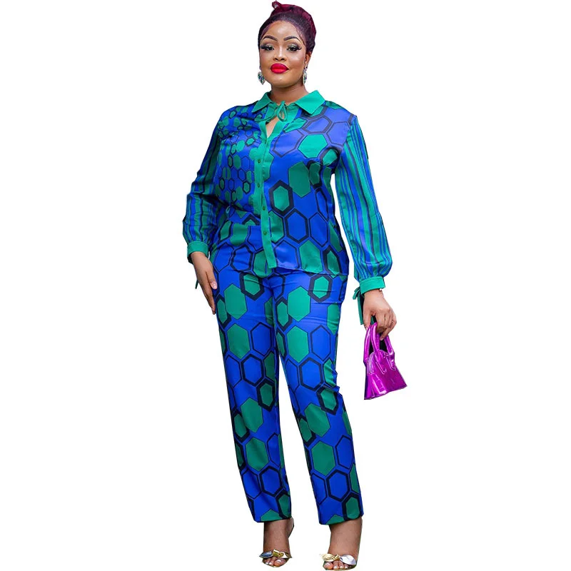 Name | Spring Autumn African Women Printing Turn Down Collar Suit Women Dashiki African Clothes Top Pant 2 Pcs Outfits Matching Sets |