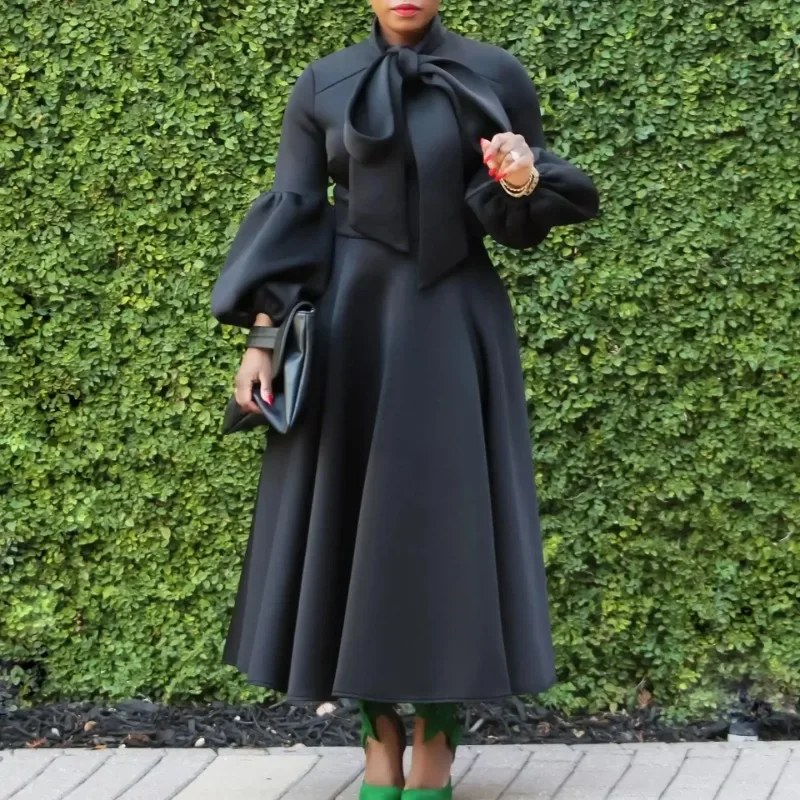 Name | Long Dress for Women Wedding Party Fall Winter Bow Neck Long Sleeve Fit and Flare Flowy Dresses Prom Christmas Club Autumn 2024 |