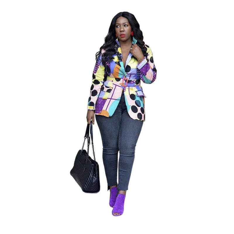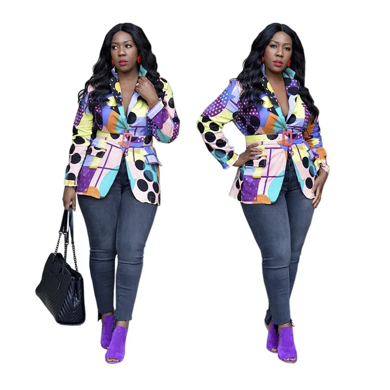 African Clothes for Women Autumn Elegant Winter African Long Sleeve V-neck Polyester Print Coat African Blazers African Clothing