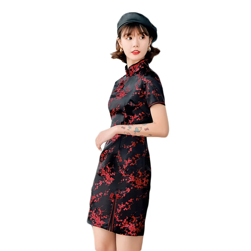 Name | Formal Dress Chinese Female Satin Dress Elegant Slim Qipao Mandarin Collar Vintage Cheongsam Vestidos Sexy High Split |