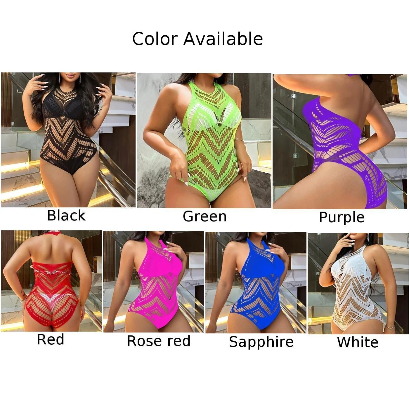 Name | Women Sexy Fishnet Bodysuit Hollow Out Mesh See Through Jumpsuit Halter Backless Sleeveless Leotard Seductive Lingerie Nightwear |