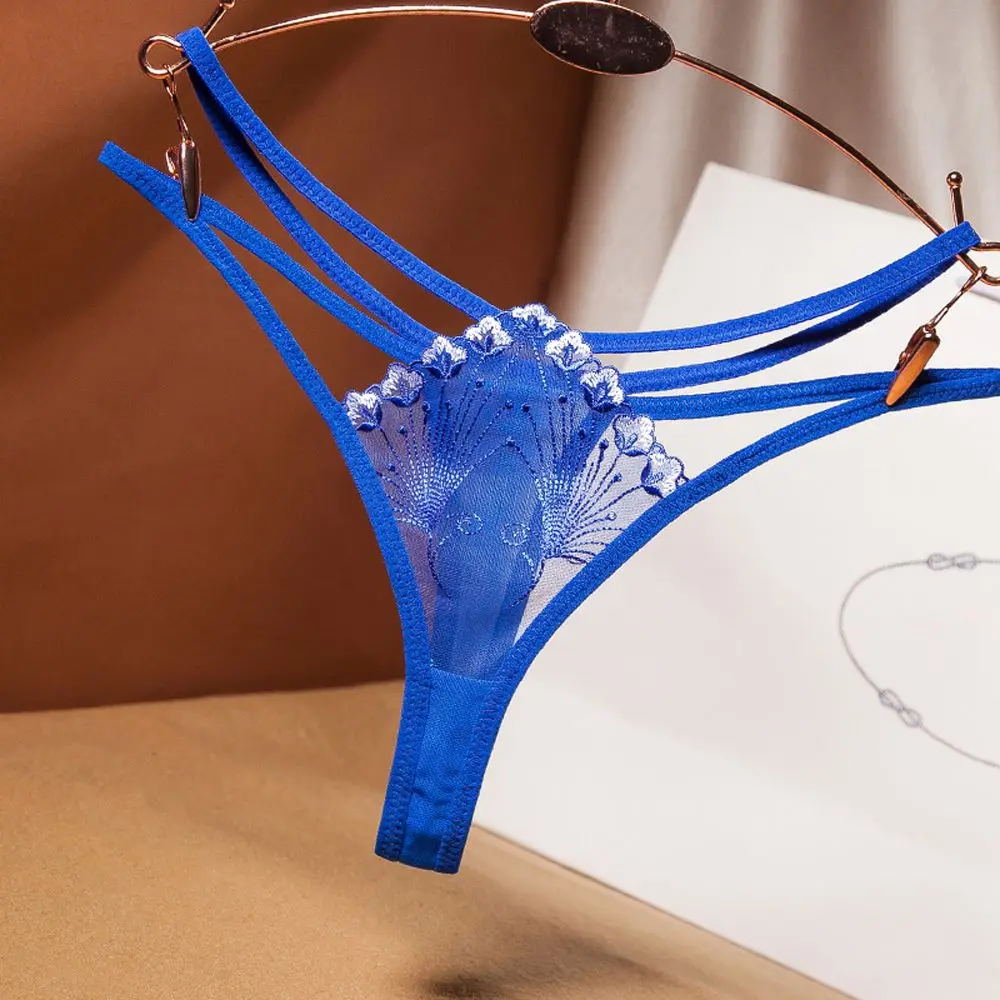 Soft Embroidery Panties Women Thin Belt Thong Briefs Flower Lace G-strings Transparent Low Waist Underwear