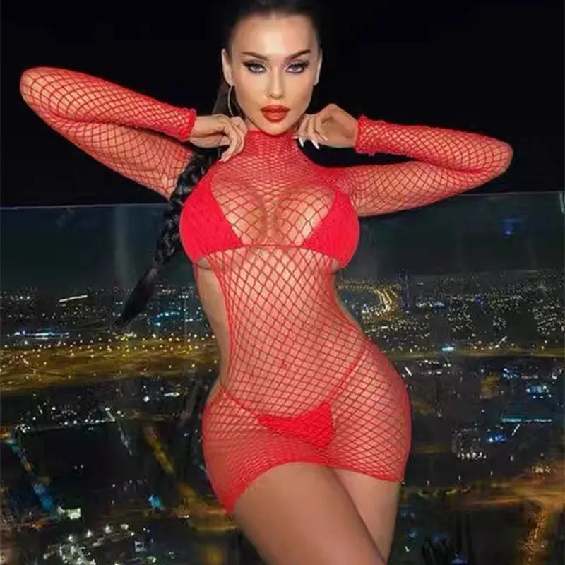 Name | Temperament Half-high Neck Long-sleeved See-through Skirt Fashion Backless Nightclub Dress Sexy Fishing Net Temptation Dresses |