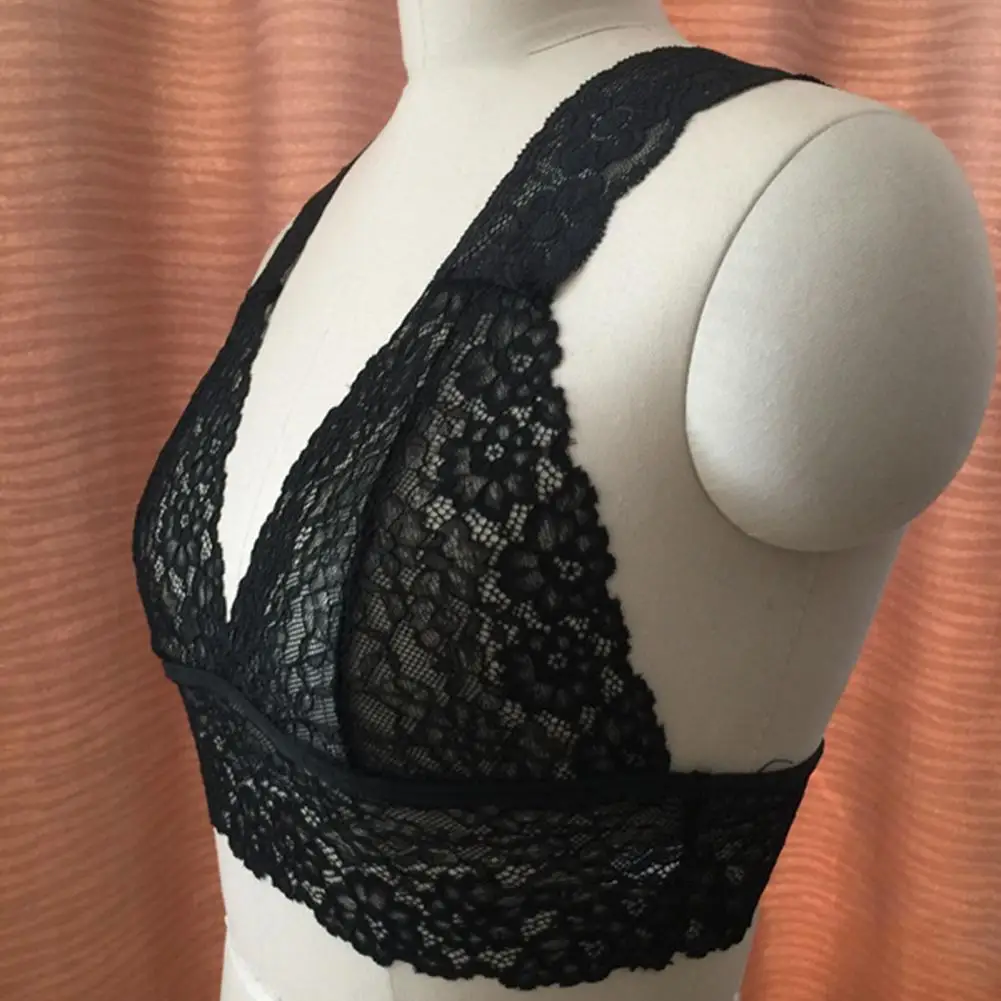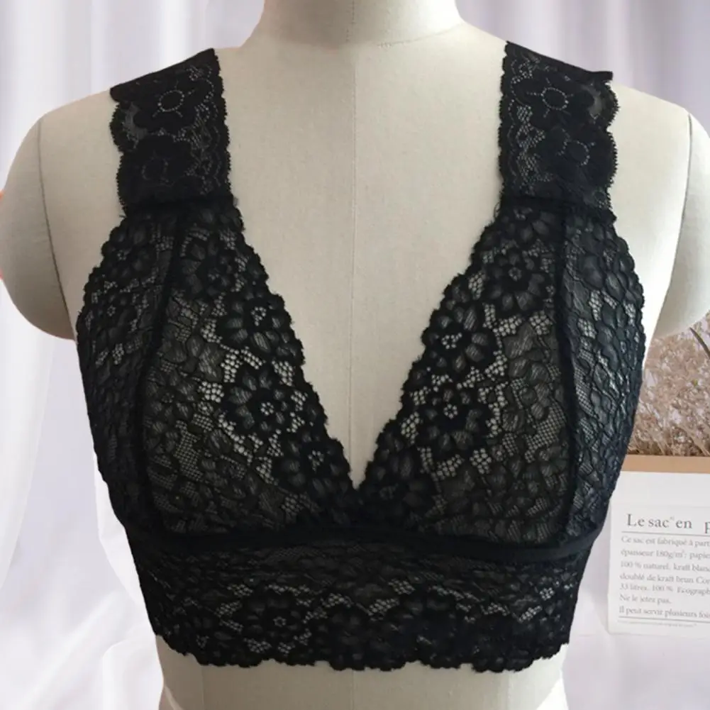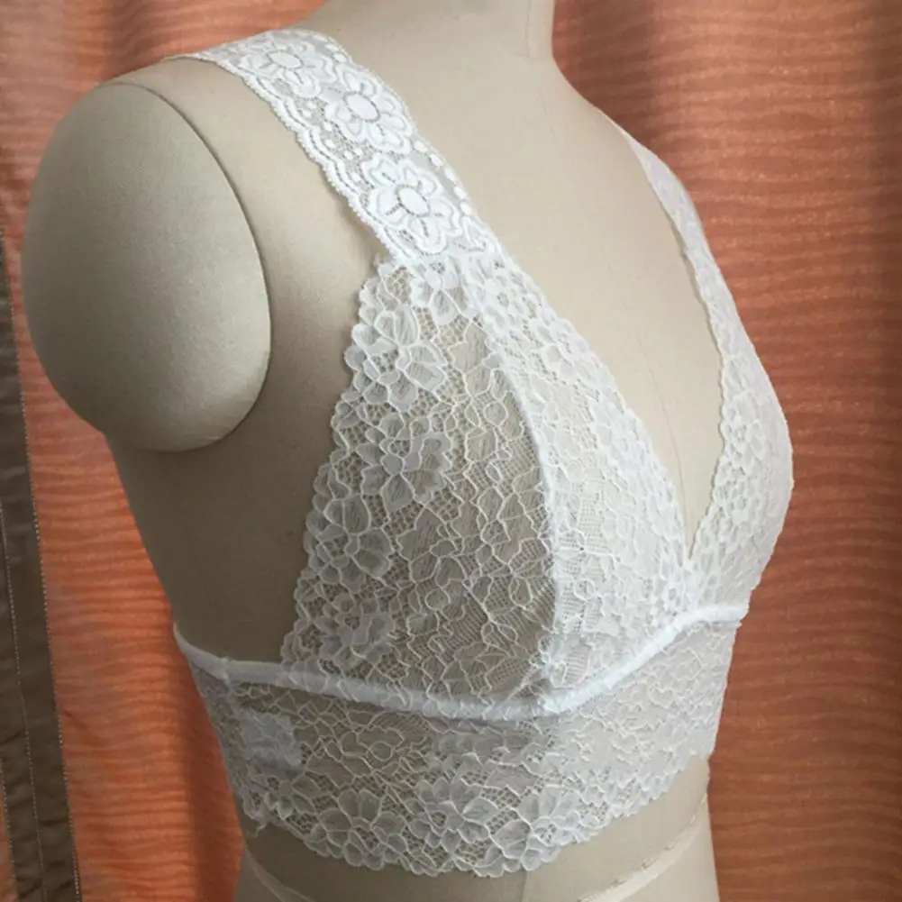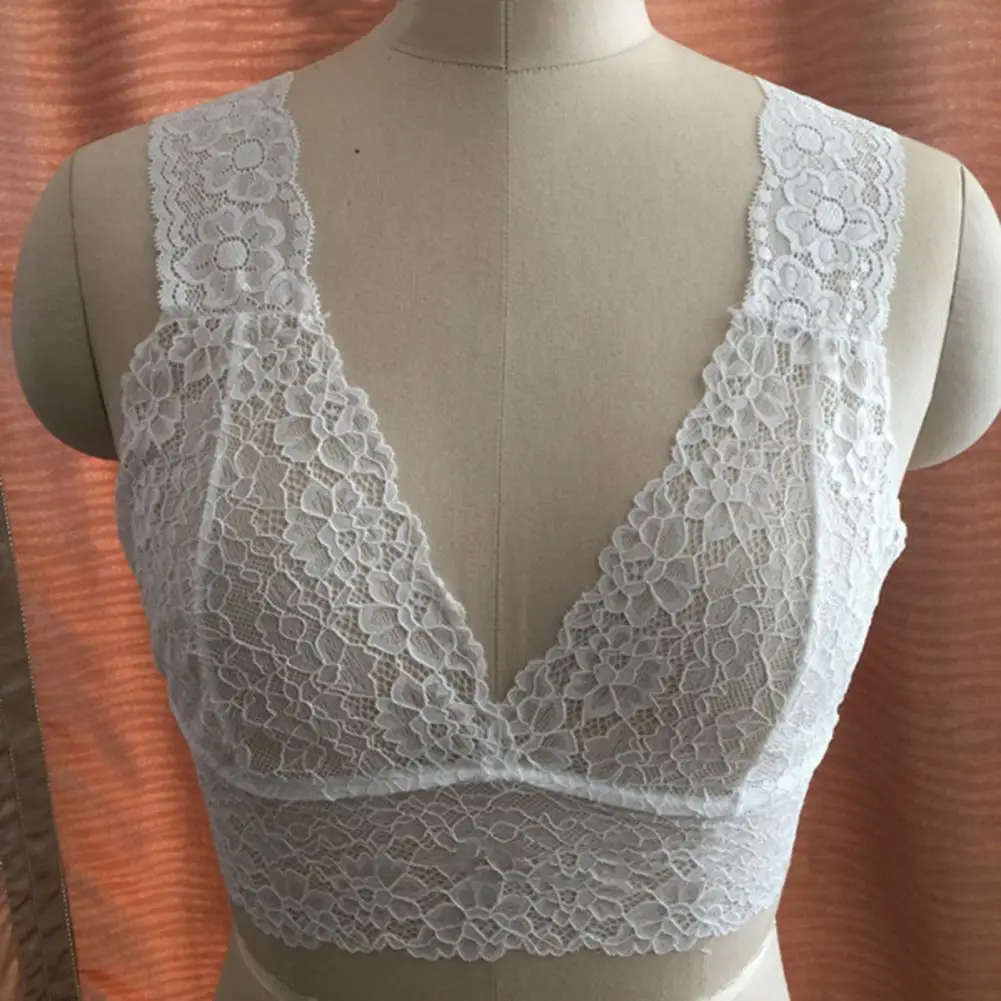 Women Vest Bra Lace Hollow Out Lady Vest Elastic V Neck Lady Camisole Flower Embroidery Women Tank Top Soft Lady Crop Top