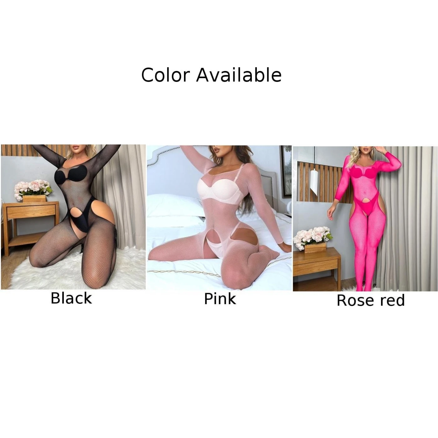Name | Women Fine Fishnet Perspective Bodystockings Hollow Out Open Crotch Bodysuit Seductive Lingerie Long Sleeve Erotic Leotard |
