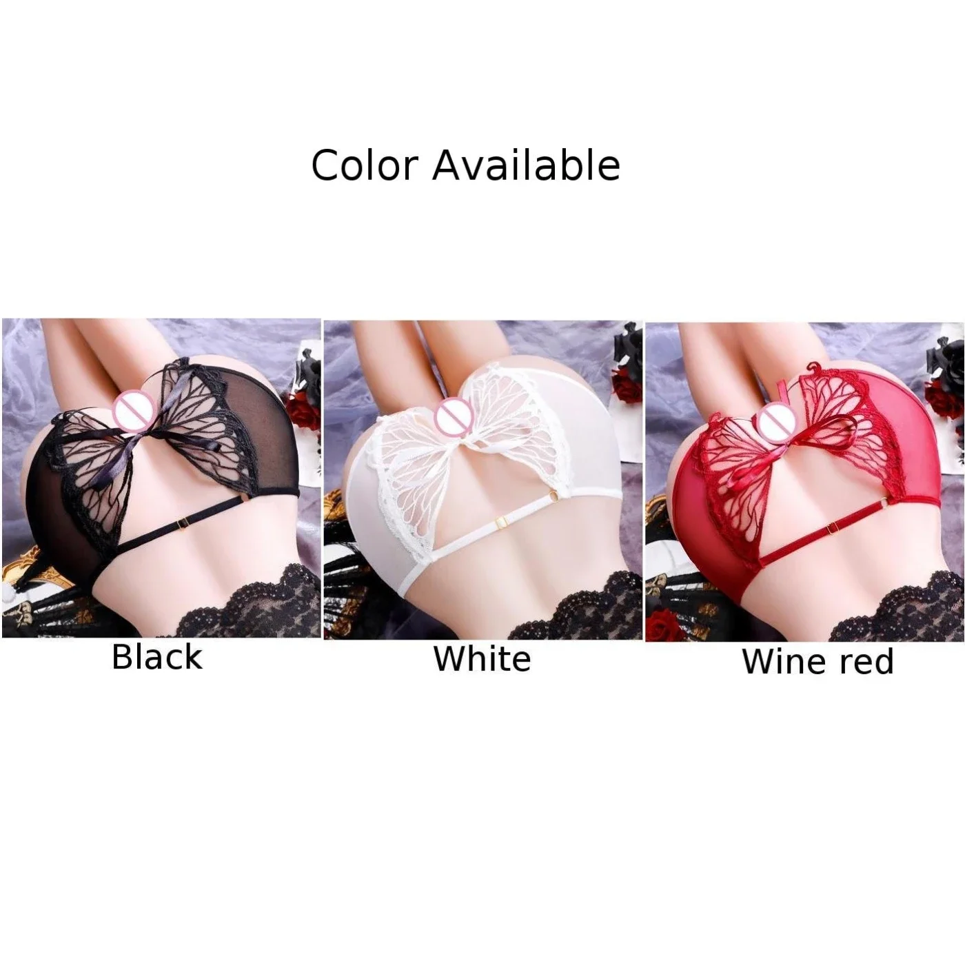 Name | Women Sexy Hollow Out Briefs Open Crotch Back Butterfly Panties Ultra Thin Mesh See Through Underpants Low Rise Erotic Lingerie |