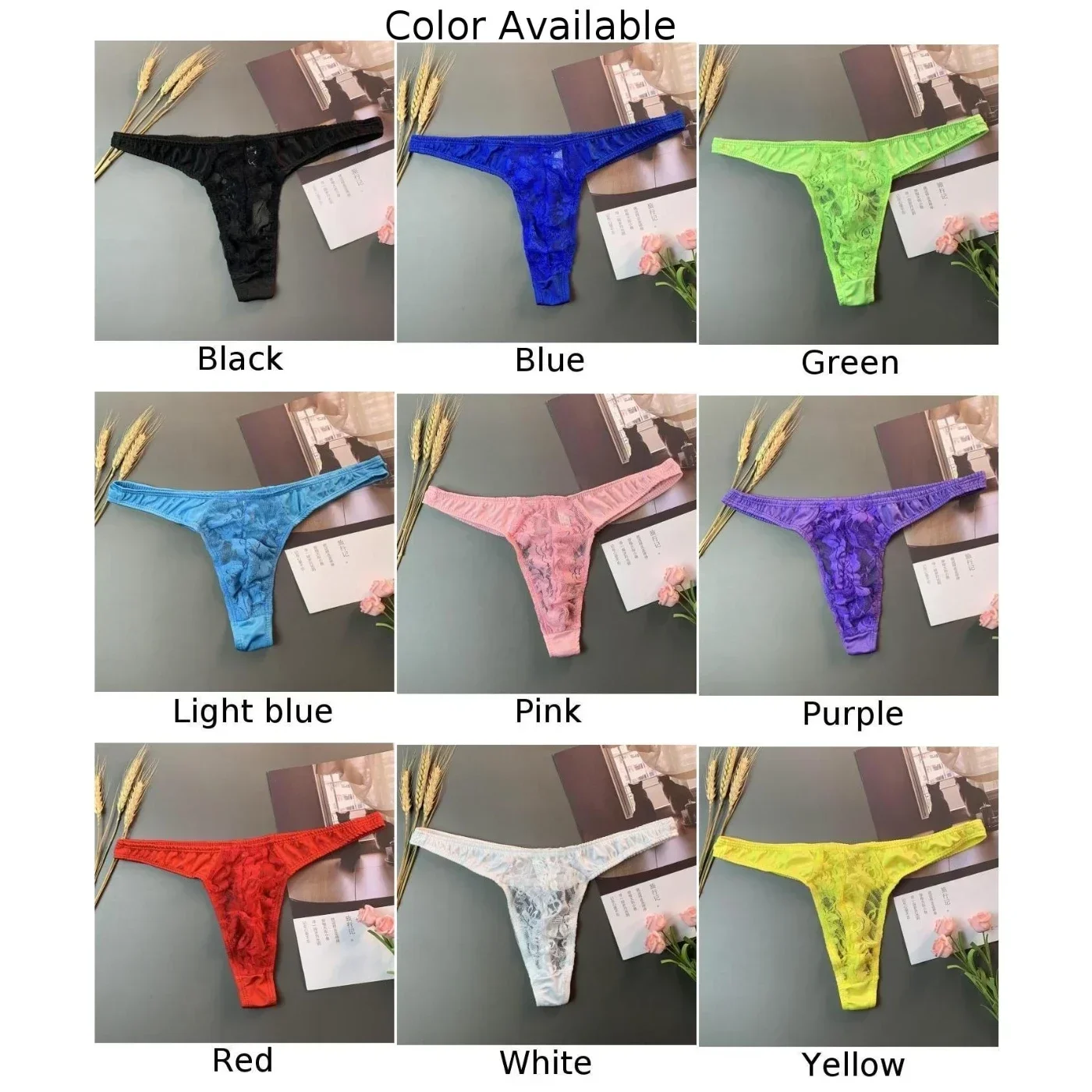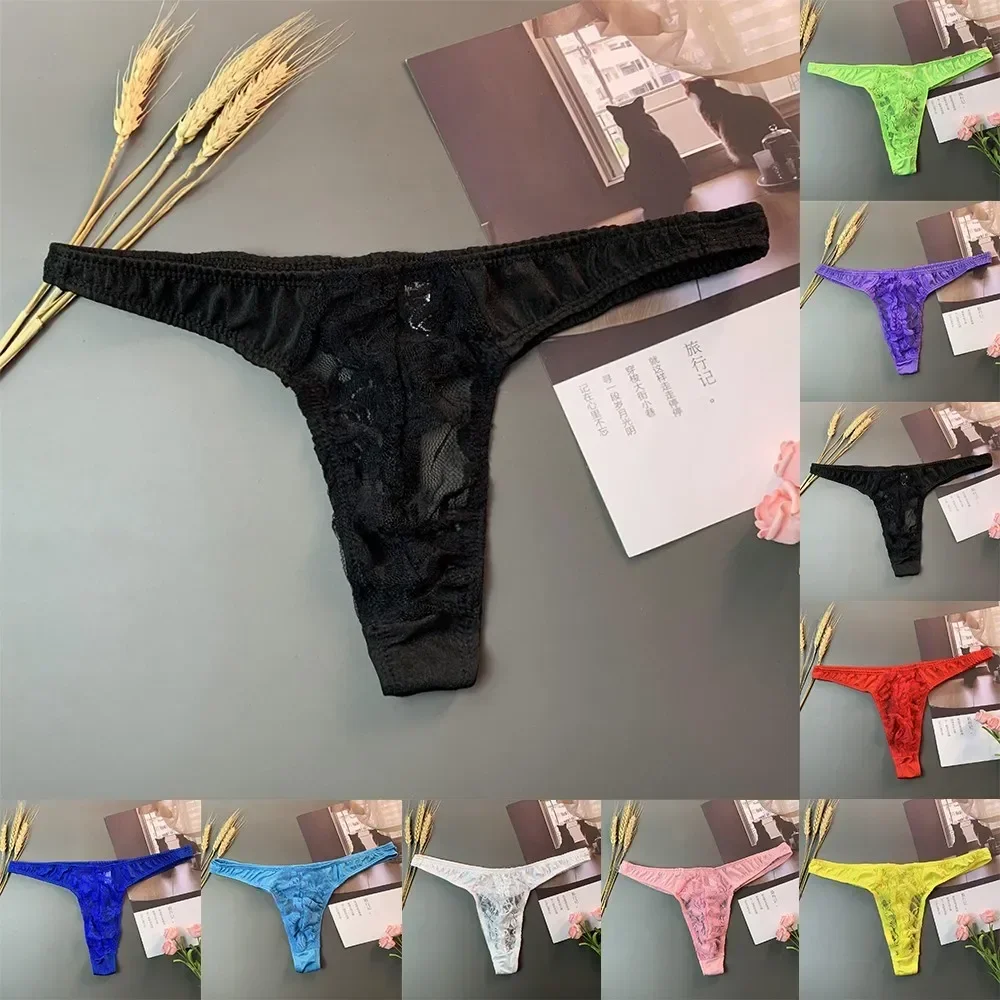 Men See Through Pouch Underwear Mesh Sheer Thongs G Strings Thin Lace Briefs Erotic Sissy Lingerie Low Waist Jock Strap Hombre