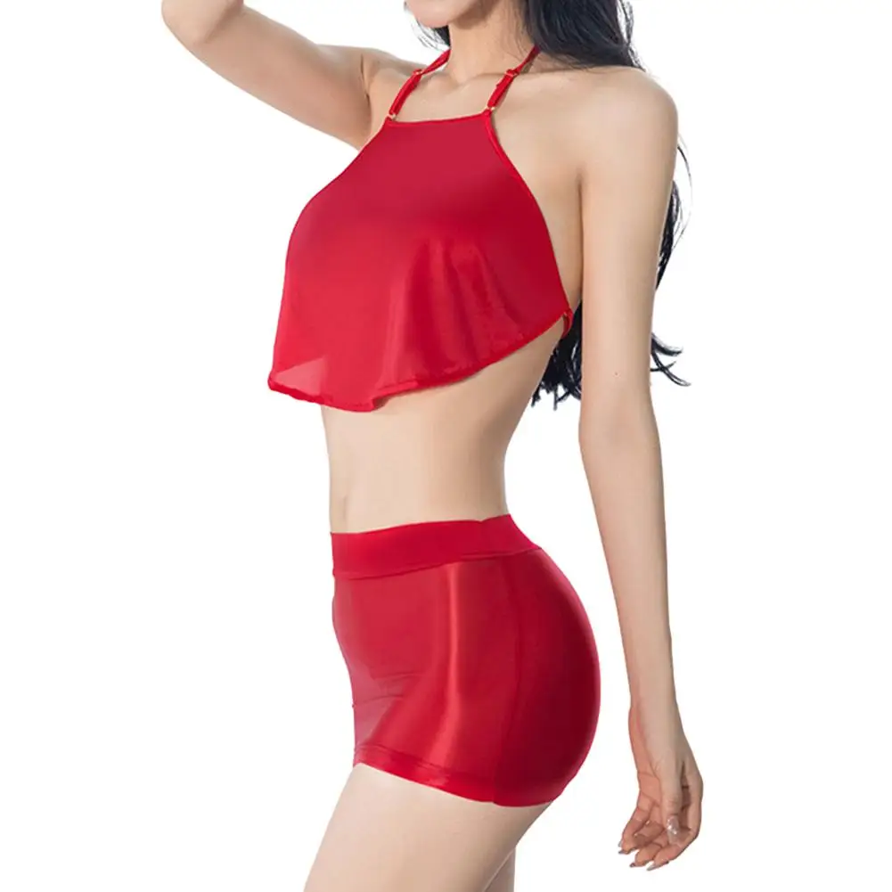 Name | Comfy Fashion Underwear Two-Piece Set Glossy Push Up High Satin Halter Sexy Skirt Suspender Transparent Waist Brief |