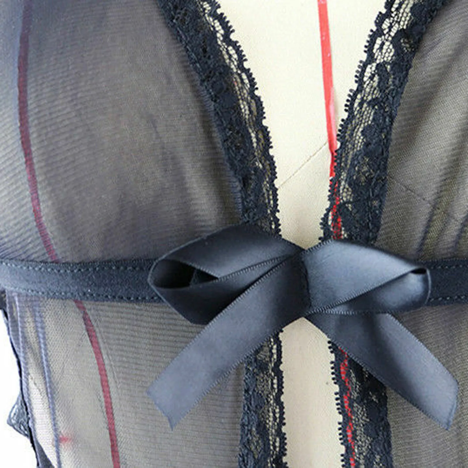 Women's Ring Sexy Underwear Lingerie Pajamas Lace Steel Sleepwear Hollow Out Deep V Neck Solid Color Garter With Bowknot