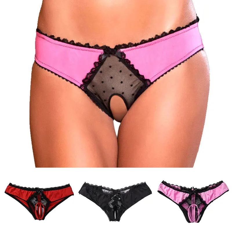 Women Exotic Underwear Sexy Thong Lace Low Waist Panties Passion Briefs Open Crotch Lace Crotchless Underwear Knickers G-string