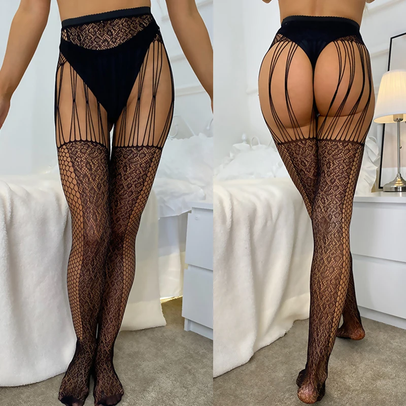 Name | Hot New Sexy Women Fishnet Stocking High Waist Transparent Tight With Garter Belt Women Lingerie Crotchless Pantyhose Plus Size |
