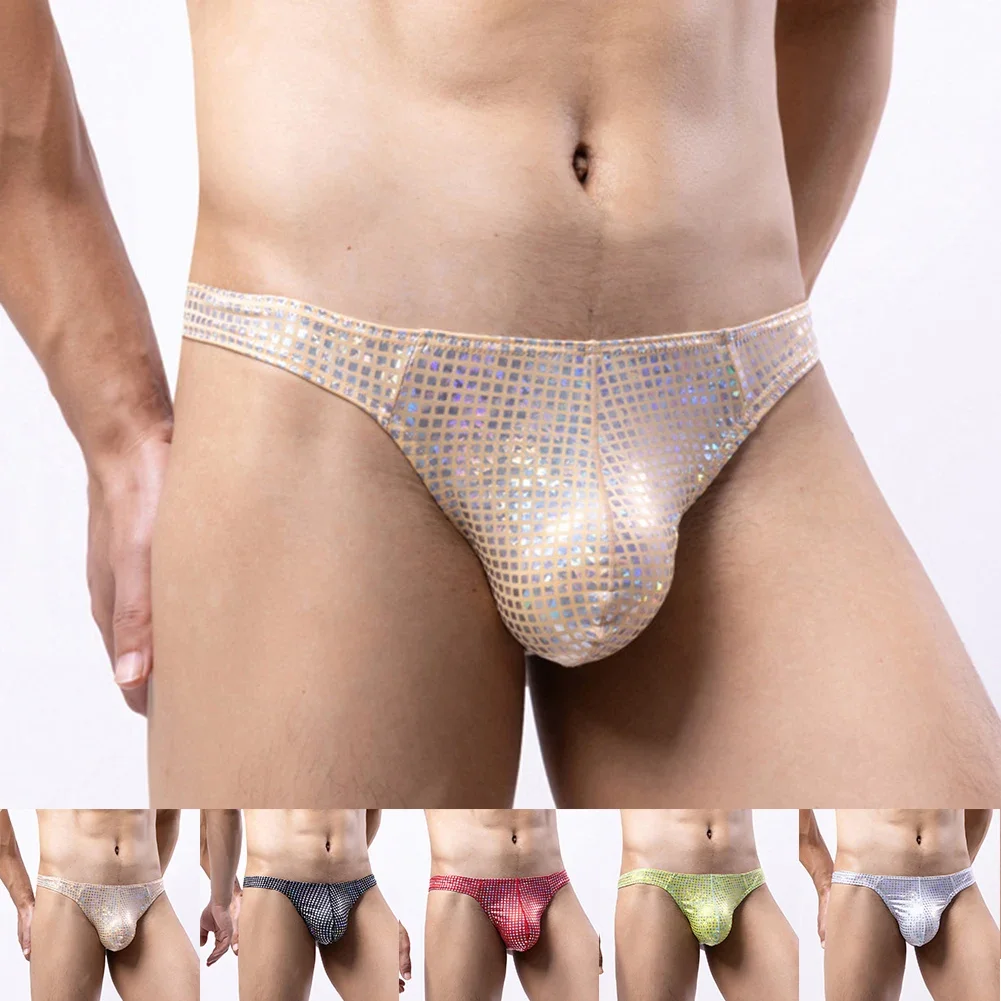Sexy Men Thongs Briefs T-Back G-String Underwear Shiny Glossy Low Waist Trunks Underpants Soft Pouch Lingerie Panties Knickers