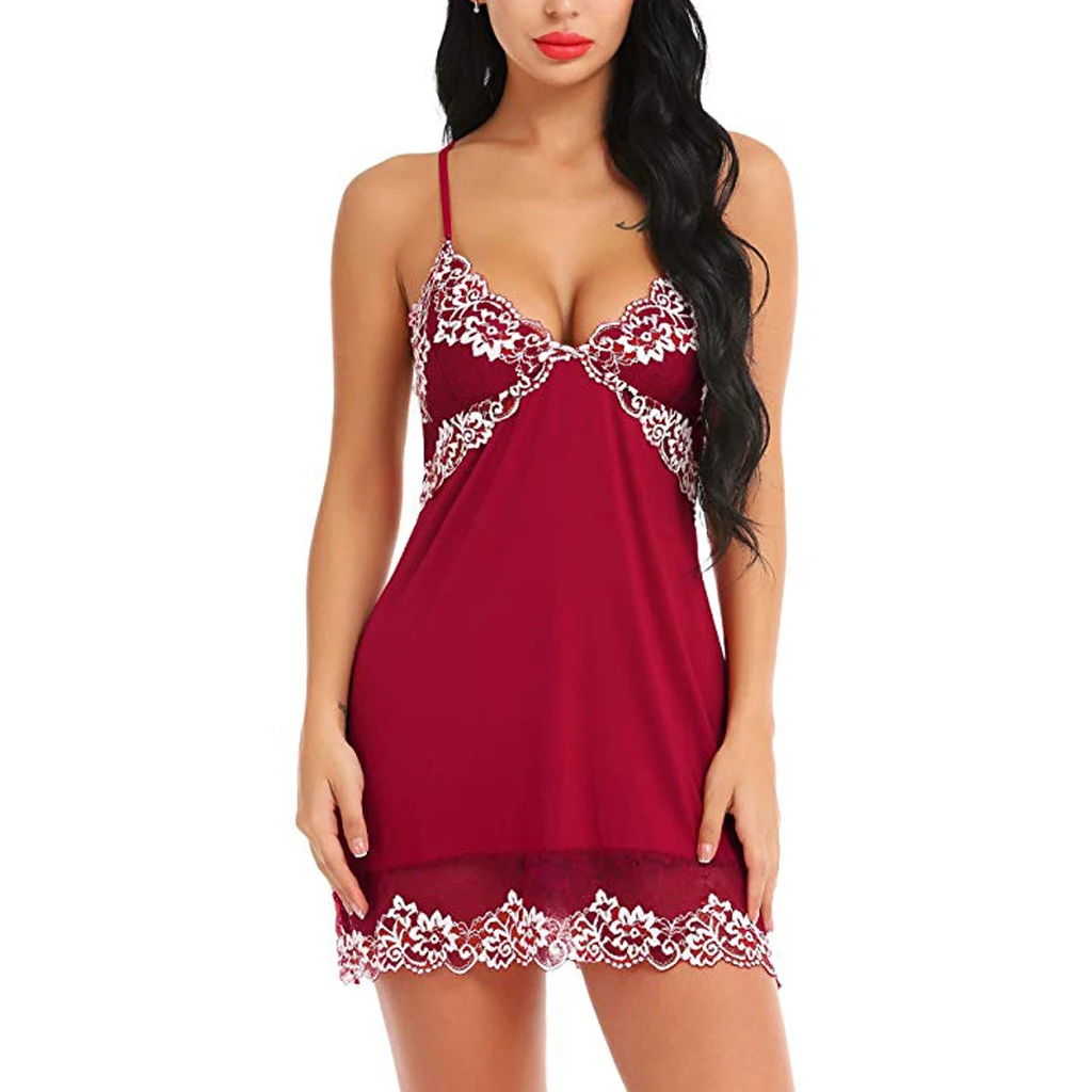 Women Silk Lace Sleeveless Babydoll Sexy Lingerie V neck Nightdress Nightgown mini short Sleepwear Exotic Night dress