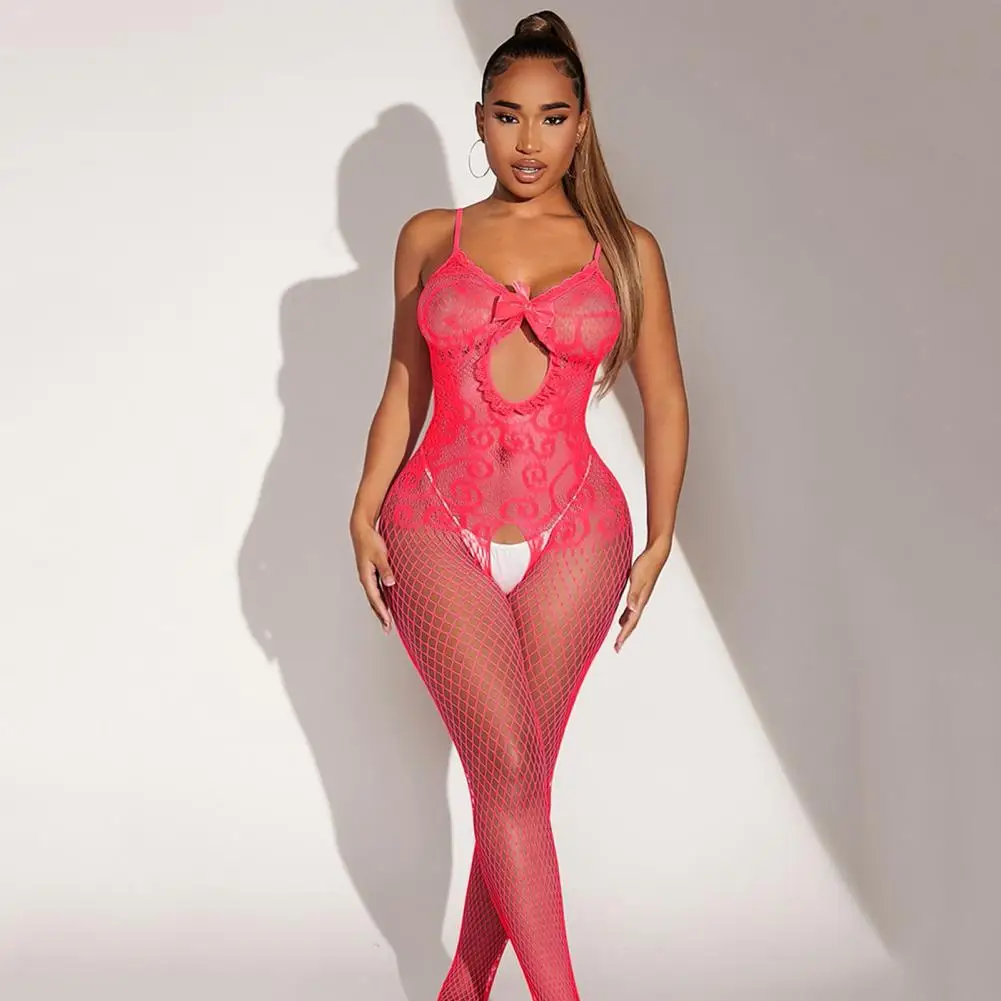 Perspective V Neck Sleeveless Female Sexy Playsuit Floral Lace Sexy Playsuit High Cut Open Crotch Bodysuit Party Supply