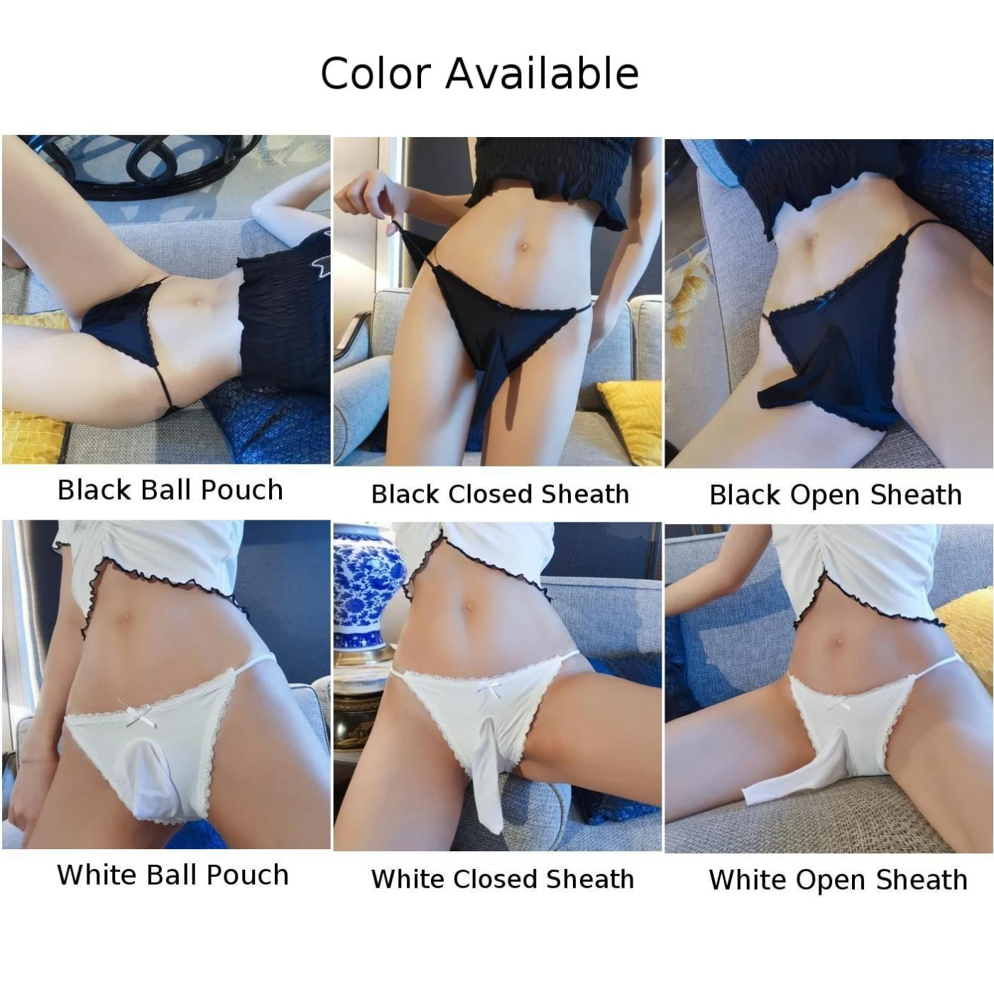Sissy Underwear Men Long Sheath Thong Briefs Erotic Lingerie Ice Silk Breathable Panties Thin Belts Low Waist G String Underpant