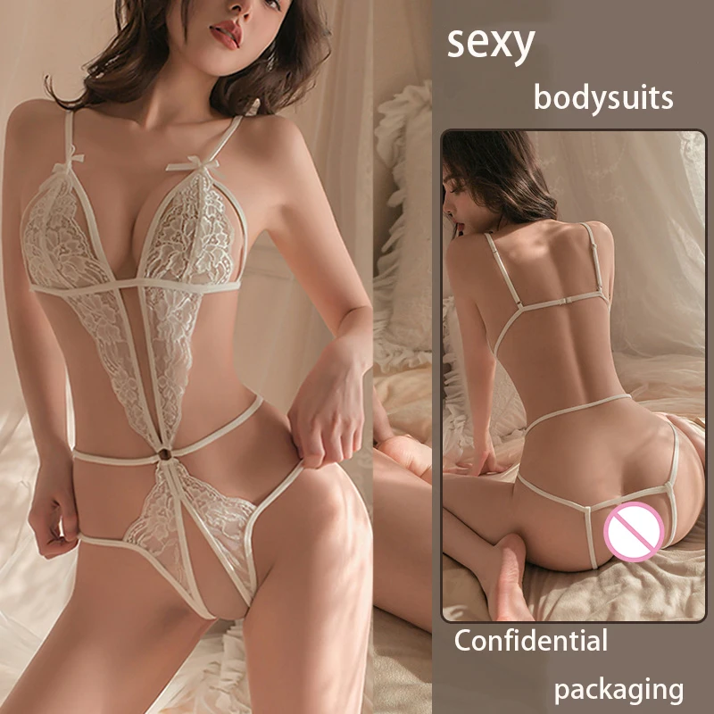 Sex Bra Crotchless White Lingerie Sexy Hot Underwear Women Lace Hollow Out Tights Bodysuit Porn Doll Dress Deep V Erotic Pajamas