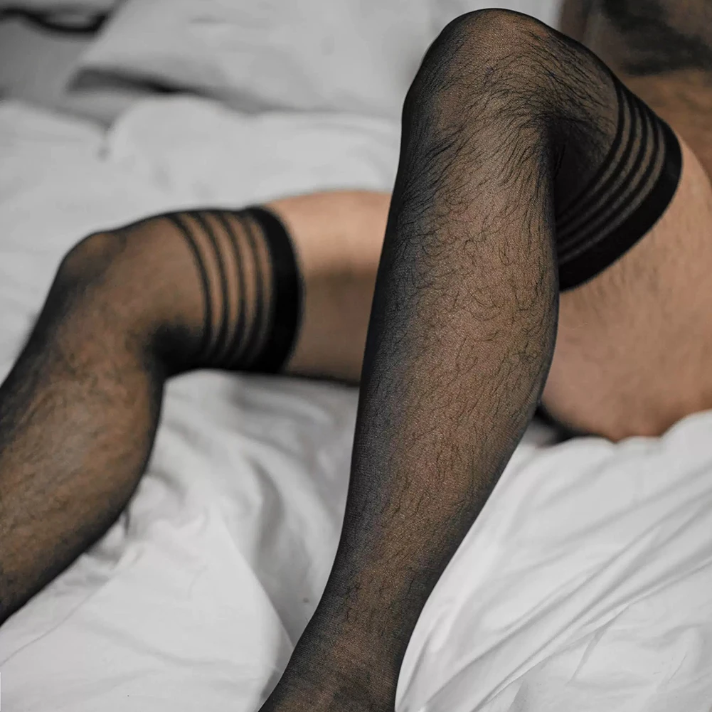 Men Leotard Pantyhose Sexy Breathable Mesh Socks Slimming Nightclub See Through Stockings Porn Lingerie
