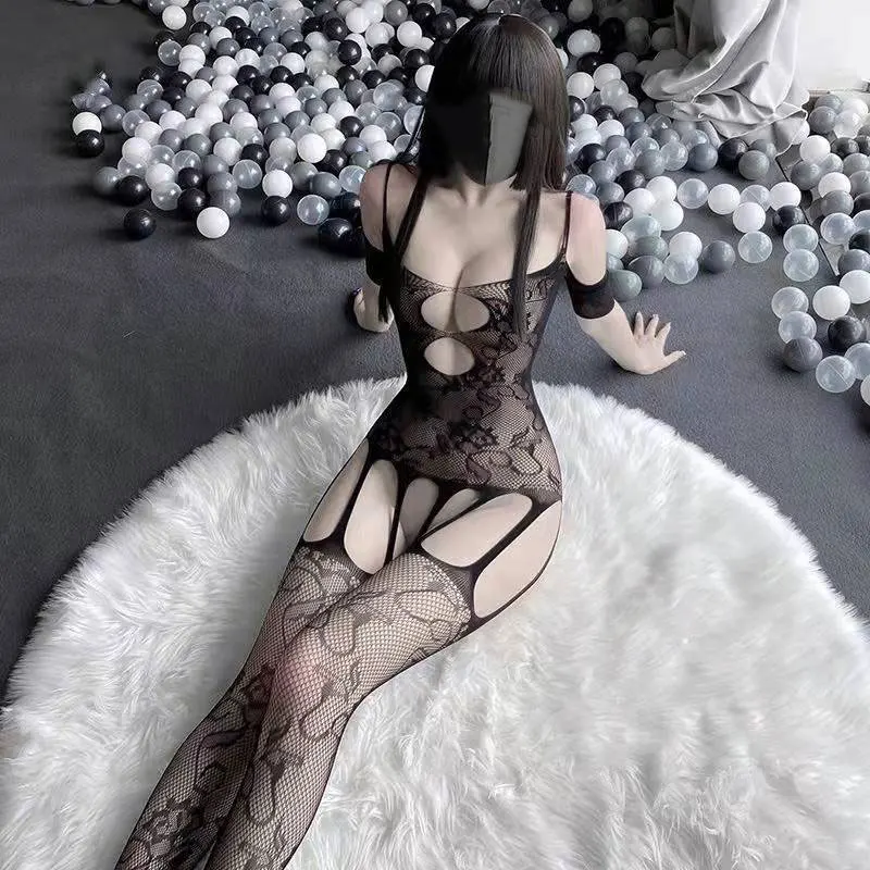 One-piece Non-marking Open Bra Lingerie Sexy Transparent Tights Mesh Fabric Hot Jumpsuit Sex Skeleton Lace Costume Plus Size Set