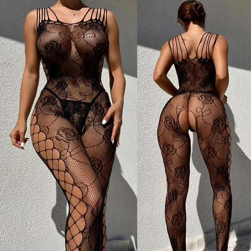 One-piece Women's Bra Lingerie Sexy Lace Skeleton Jumpsuit Erotic Transparent Temptation Costume Crotchless Doll Tights Plussize
