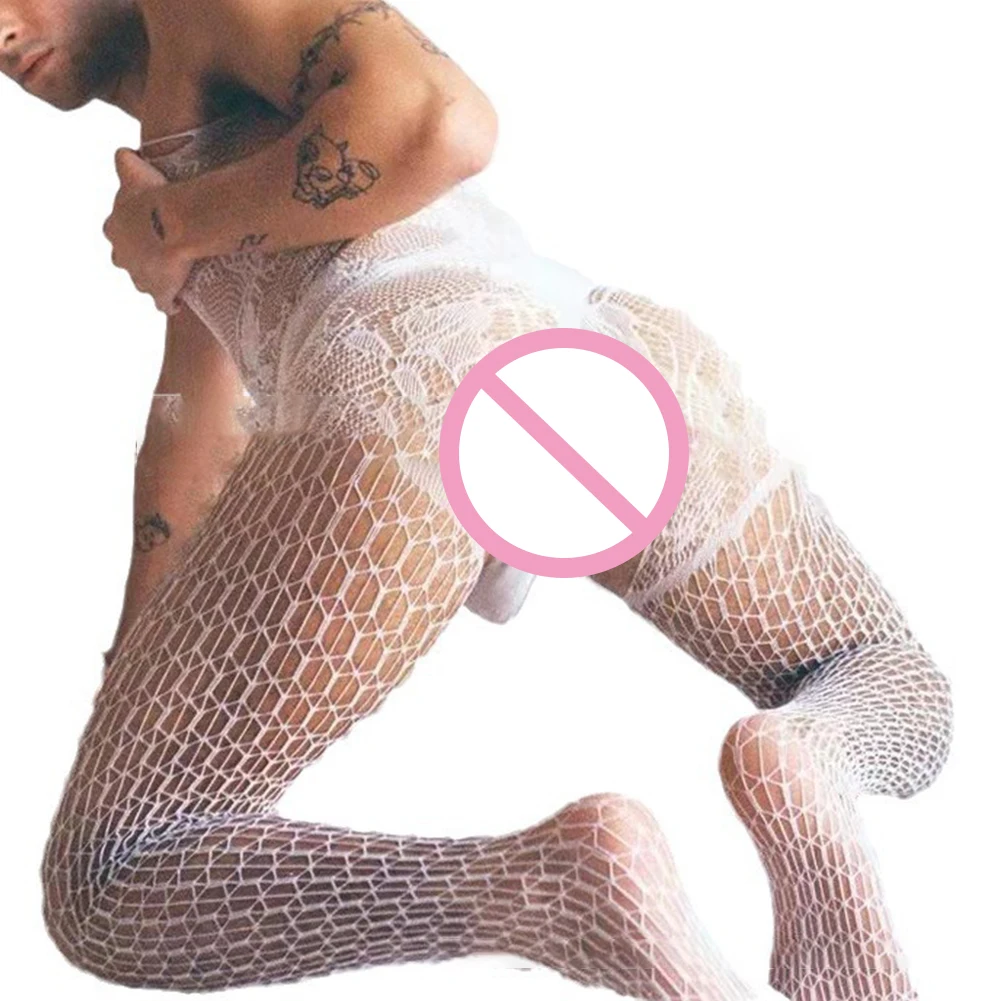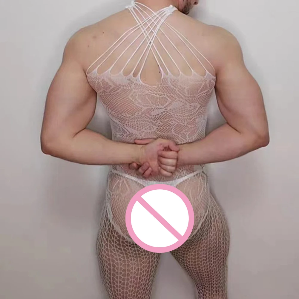 Name | Men Hollow White Mesh Bodysuits Jacquard Fishnet Full Bodystockings Sleeveless See Through Jumpsuit Crotchless Erotic Lingerie |