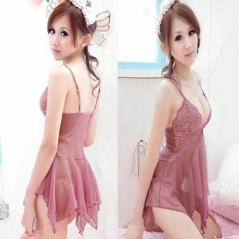 Name | New arrival Women Sexy Lingerie Lace Dress sleeveless Underwear Sleepwear+G-string Nightwear Dress Exotic pink Dress Babydoll |