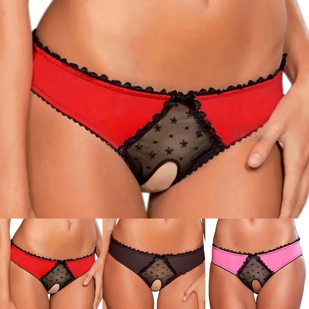 Name | Sexy Women Mesh See Through Underwear Lace Open Crotch Briefs Lingerie Bowknot Hollow Underpants Ultra-Thin Breathable Panties |