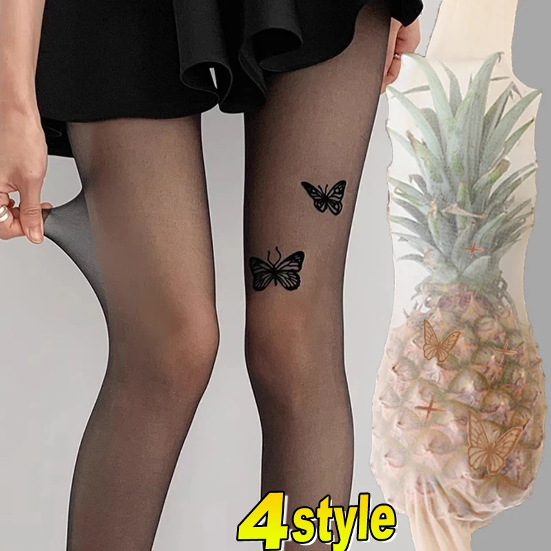 2024 Y2K Women's Ultra-thin Tights Sexy Vintage Fake Tattoo Butterfly Transparent Silk Pantyhose Girls Lolita Summer Stockings