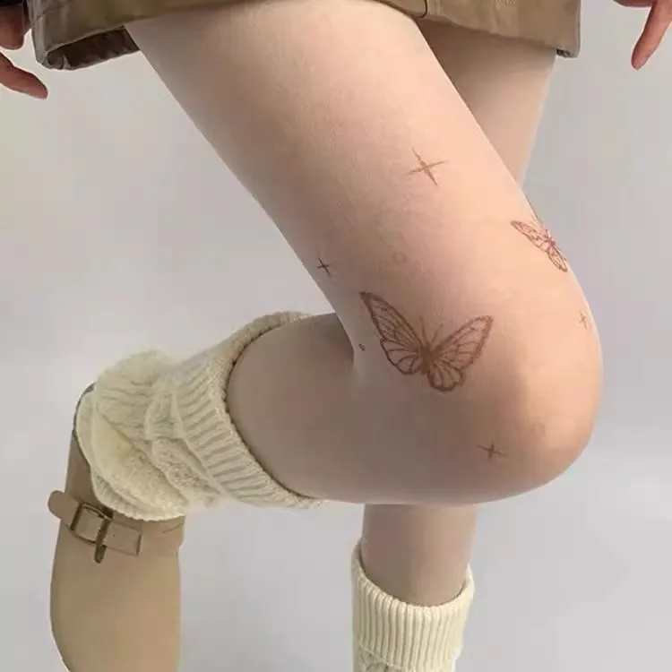 Gothic Butterfly Stockings Lingerie Women Girls Y2k Lolita Thigh High Tights Pantyhose Kawaii Japanese Sexy Ultra-thin Leggings