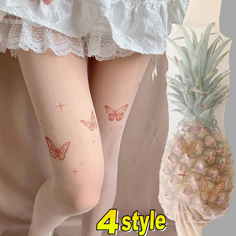 Y2K Women's Ultra-thin Tights Sexy Retro Fake Tattoo Butterfly Transparent Silk Pantyhose Spicy Girls Lolita Summer Stockings
