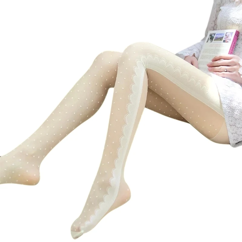 Women Sexy Silky Nylon Sheer Pantyhose Heart Lace Eyelash Dot Print Patterned Tights Hosiery Stretchy Thin Stockings