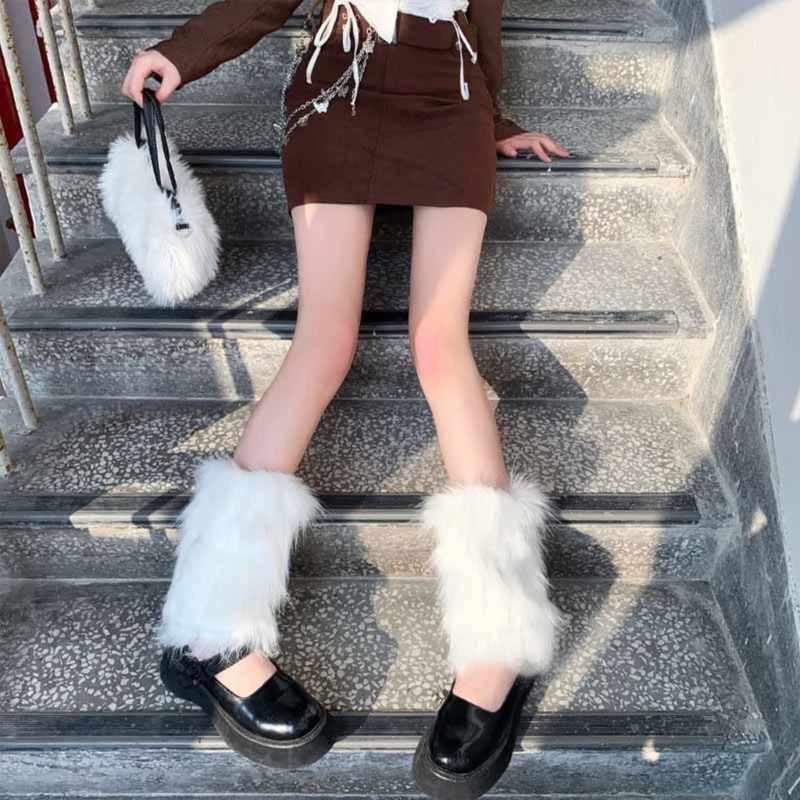 Women Winter Solid Furry Leg Warmer Socks Harajuku Gothic Leggings Shoes Cuffs