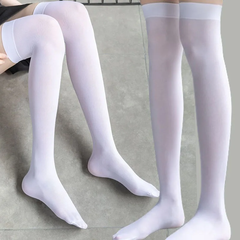 Girls' Sweet Over Knee Long Socks Women's Sexy Black White Nylon Calf Socks Thigh High Stockings Legging Lolita Cosplay Tights