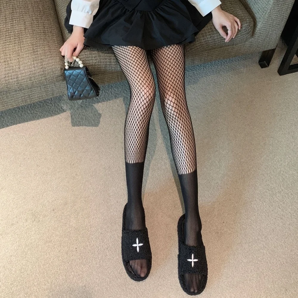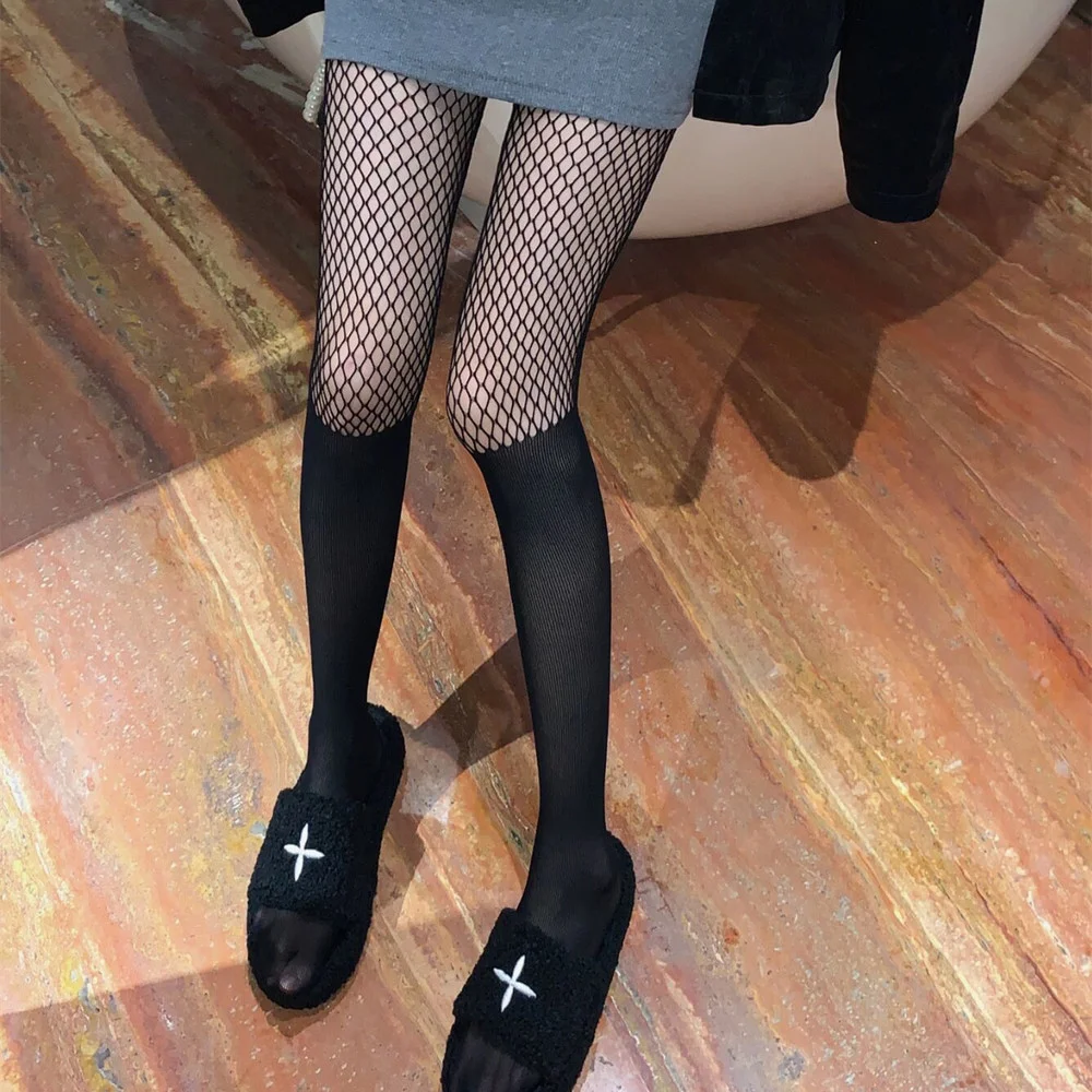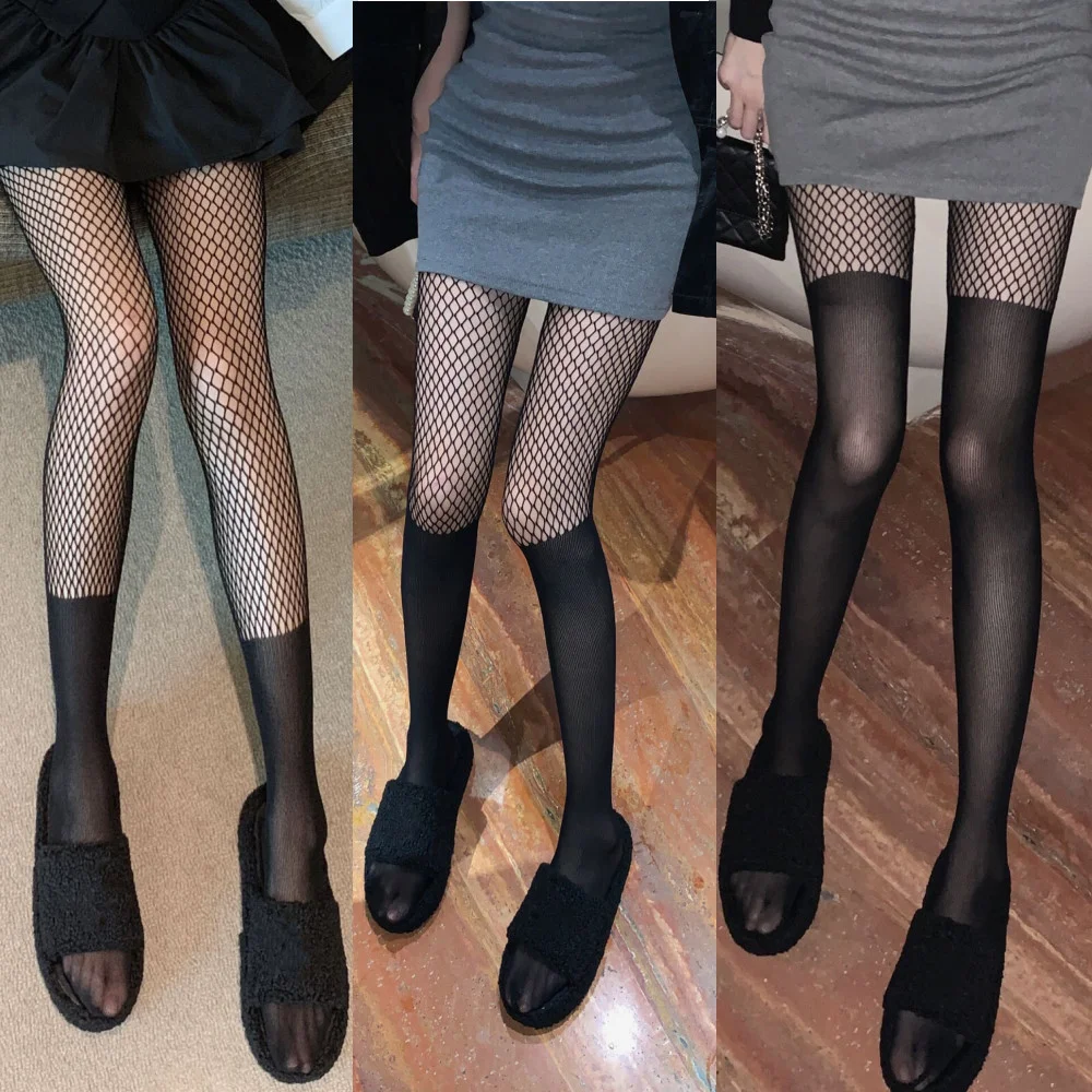 Black Sexy Over Knee Striped Patchwork Thigh High Stockings Women Tights Pantyhose Mesh Fishnet Pantyhose JK Lolita Girls 3Color