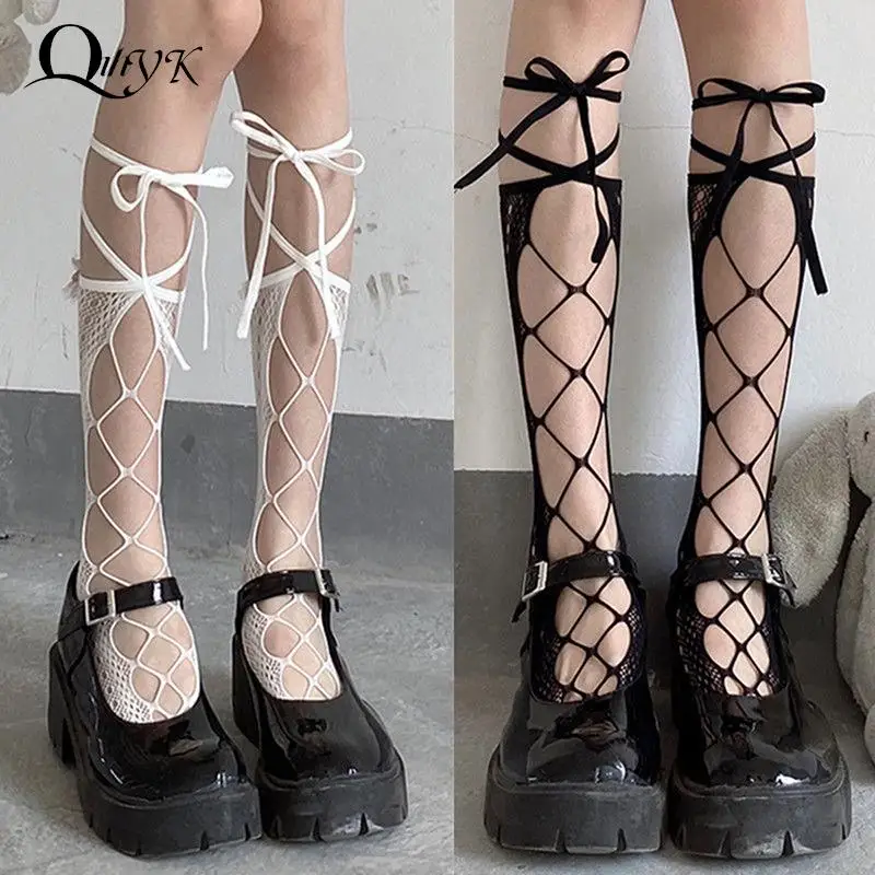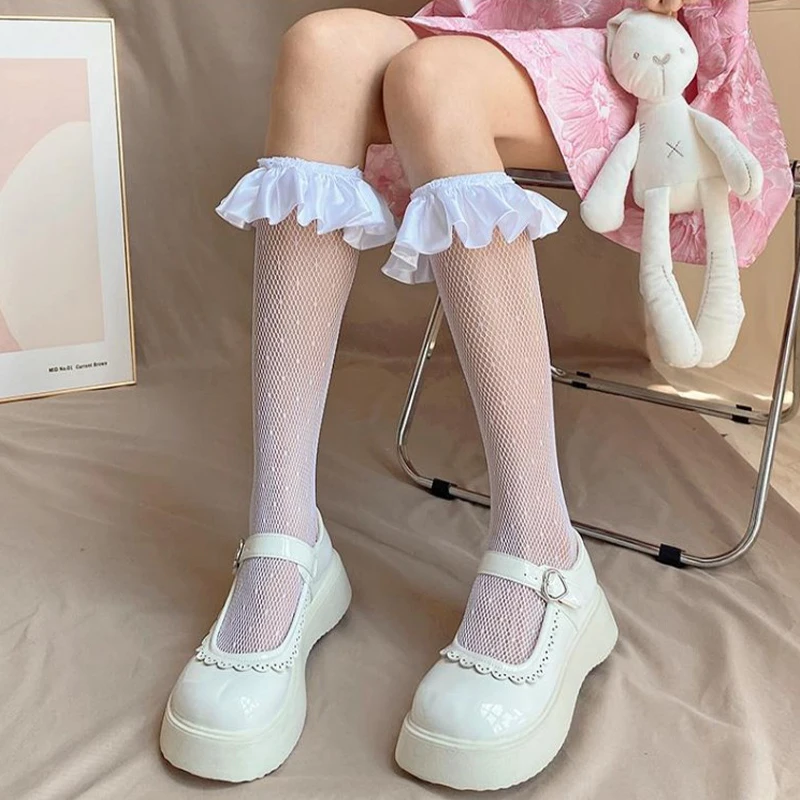 Sweet Lace Stockings Women Thigh Knee Socks Black Thin Legging Lolita Thigh High Fishnet Stockings Gothic Punk Long Socks