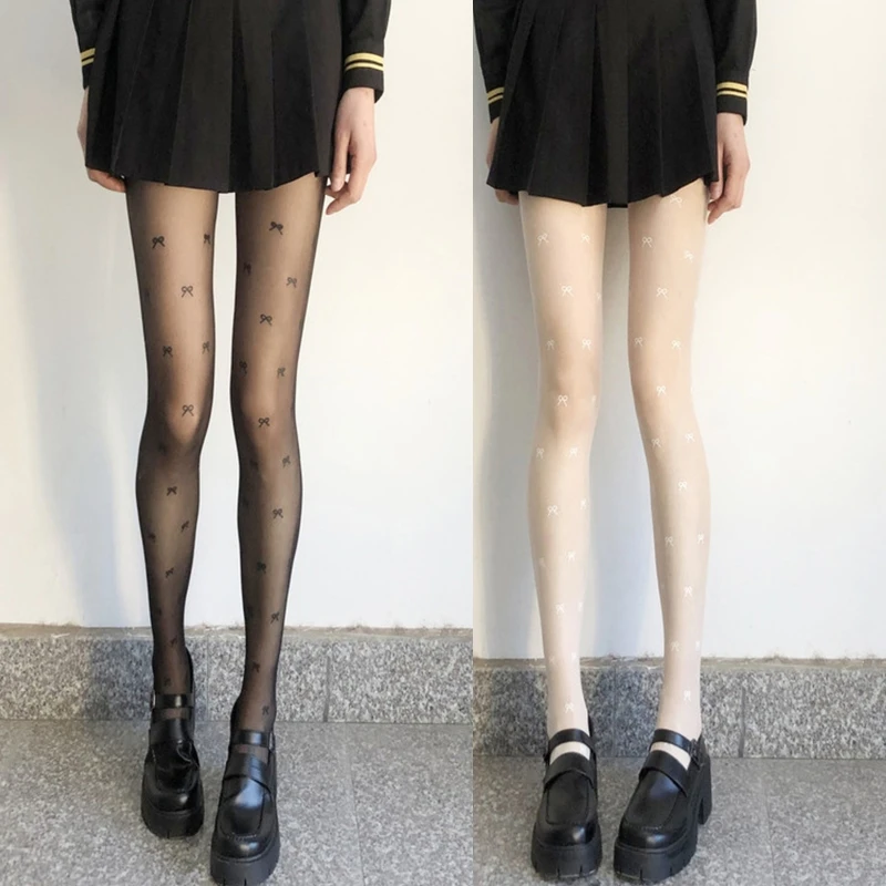 Women Sexy Sheer Pantyhose Sweet Bowknot Jacquard Print Tights Stockings