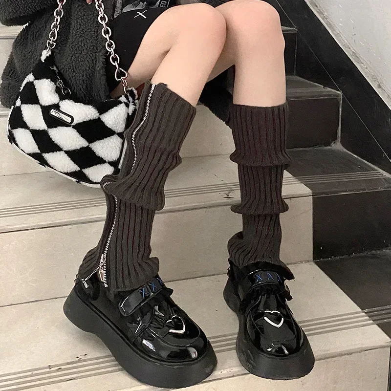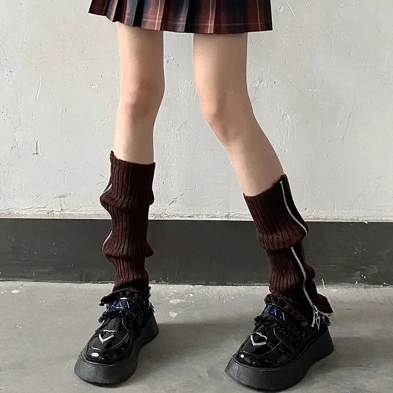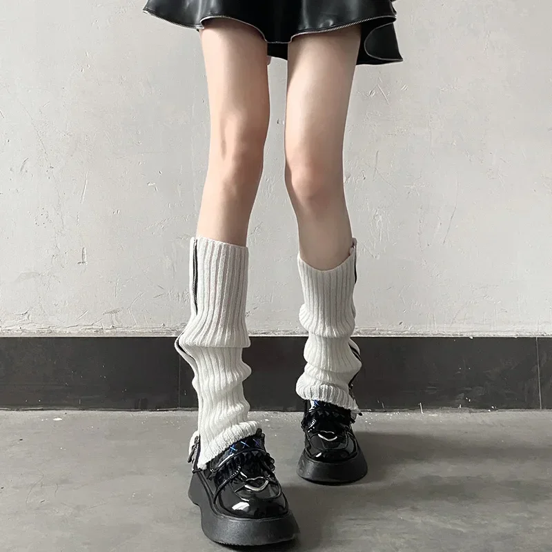 Punk Zipper Thigh Leg Warmers Women Girls Jk Knee High Legging Autumn Winter Boot Ankle Cuffs Stocking Lolita Tube Knit Socks