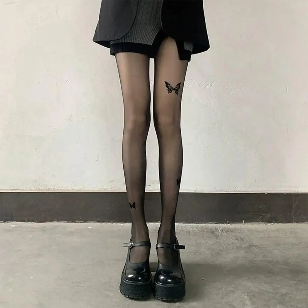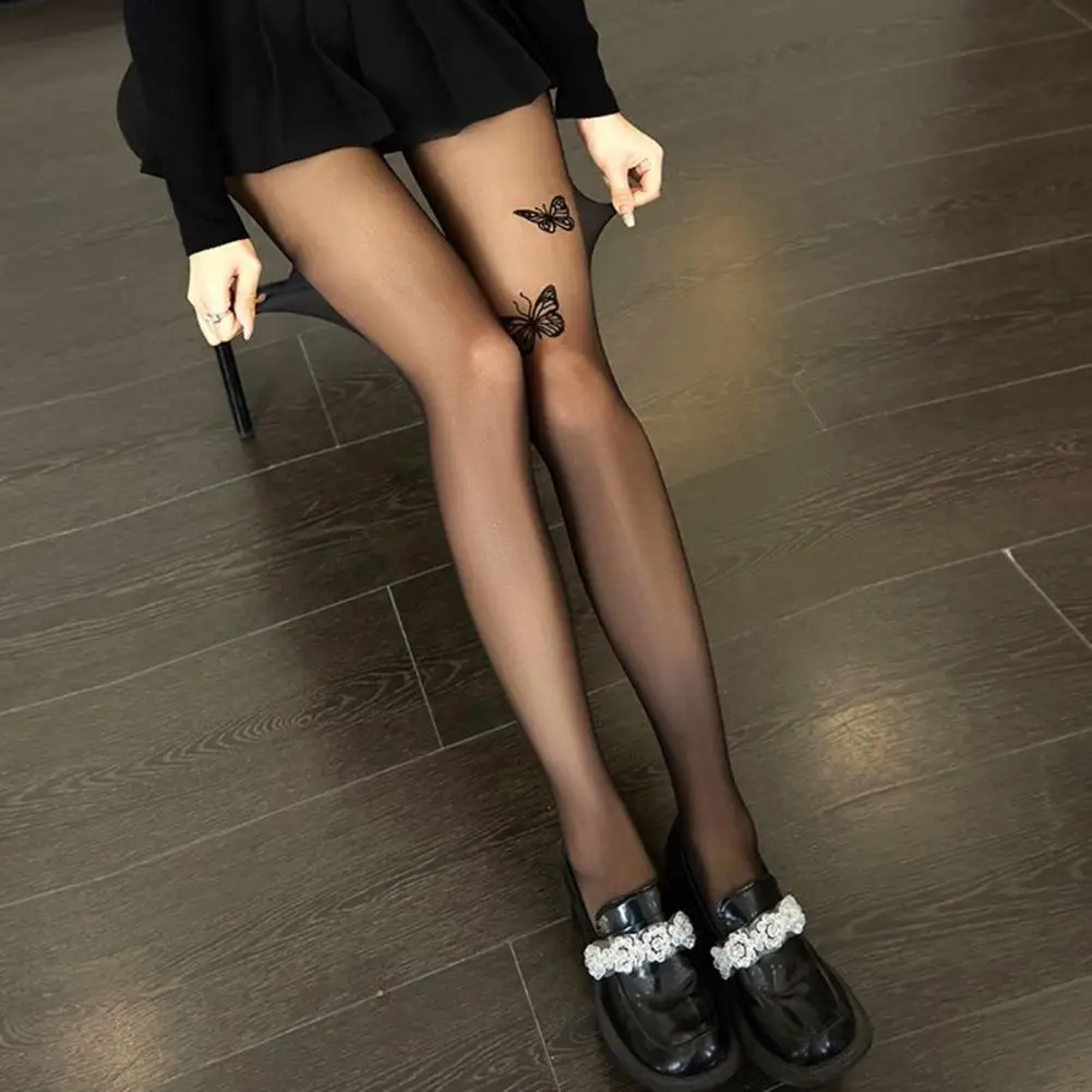 Sexy Butterfly Print Pantyhose Ultra-thin See-through High Elasticity Silk Pantyhose Women Stocking JK Lolita Girls Tights