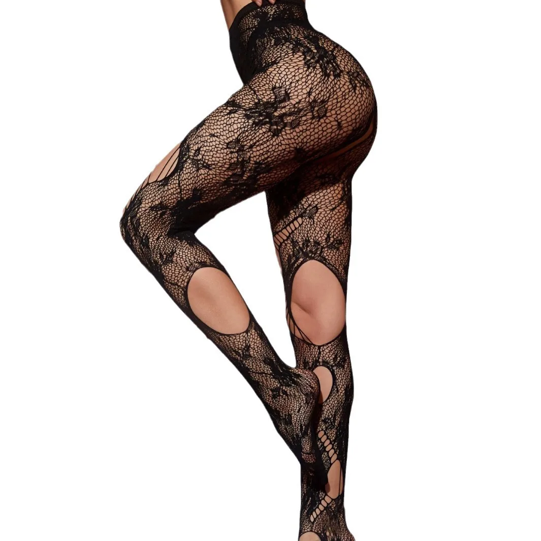 Open Crotch Bodystockings Erotic Transparent Sexy Lingerie With Lace Tights Nylon Fishnet Stockings
