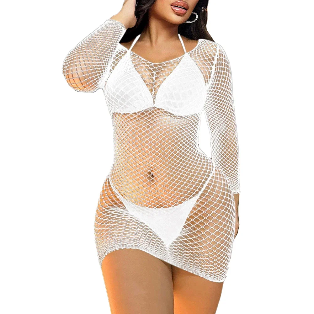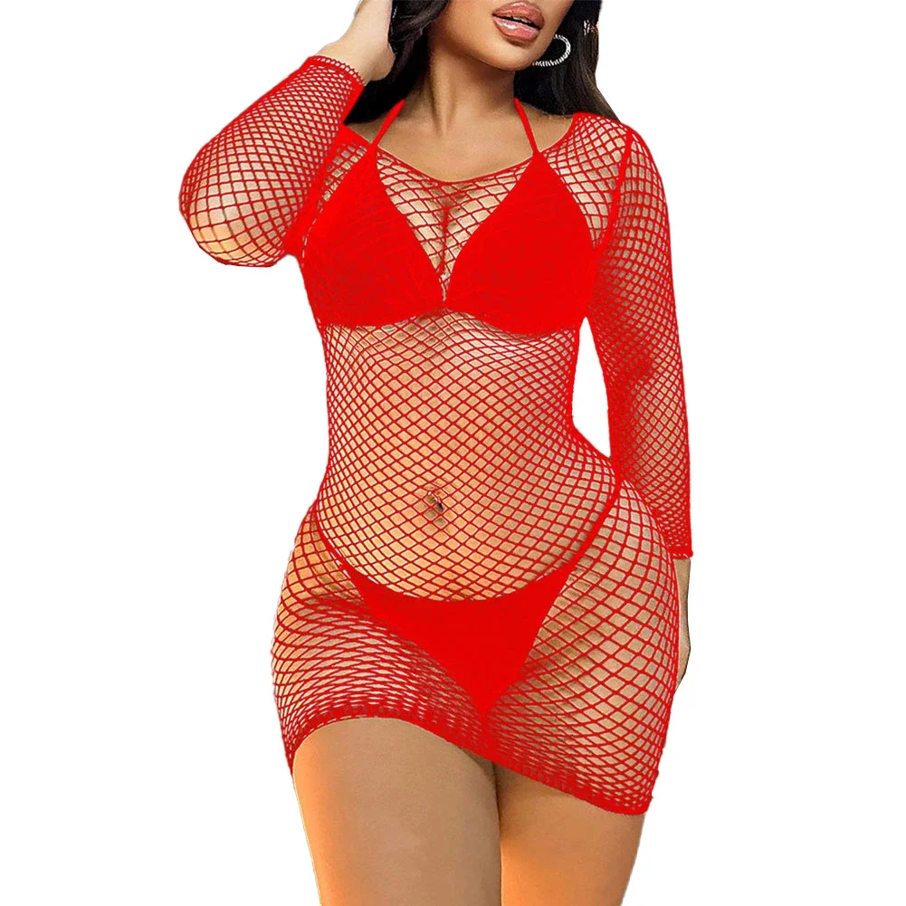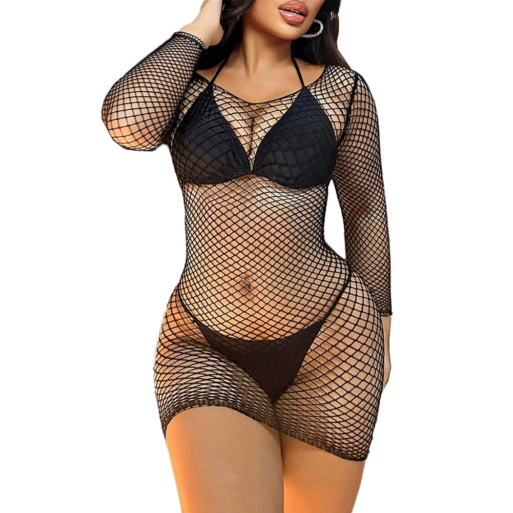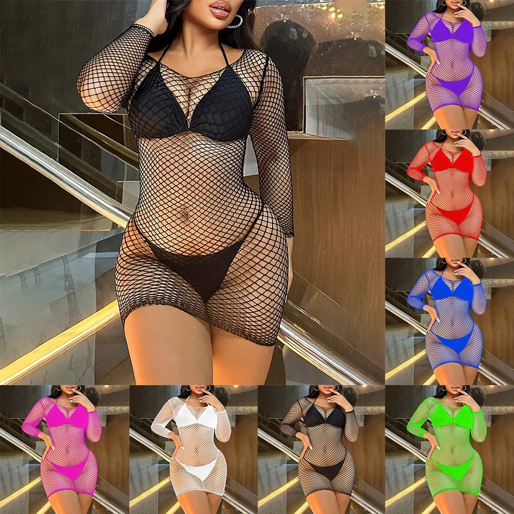 Womens Sexy Lingerie Long Sleeve Tights Mesh Bag Hip Tube Top Miniskirt Sexy Hollow Out Hip-wrapped Short Skirt For Sex Love
