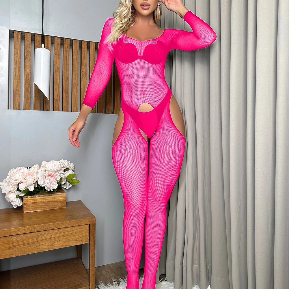 Name | Sexy Women Fishnet Crotchless Bodystocking Stretch Ultra-Thin Lingerie Open Crotch Breathable Bodysuit Romper O-Neck Leotard |