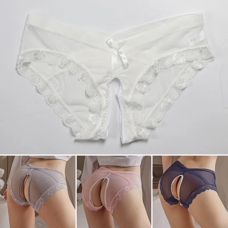 Women Sexy Open Crotch G-String Lingerie Ladies Lace Mesh Briefs Thongs Underwear Panties Underpants Crotchless Babydoll Briefs